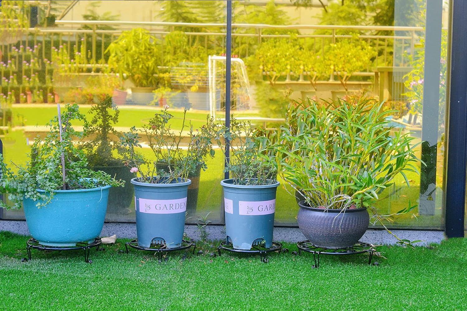 2 packs 12" Black Metal Plant Stands Heavy Duty Plants Holder Outdoor Indoor, Round Wrought Iron Sturdy Flower Planter Pot Stand, Corner Gardening Inside Potted Plant Risers - 12Inches