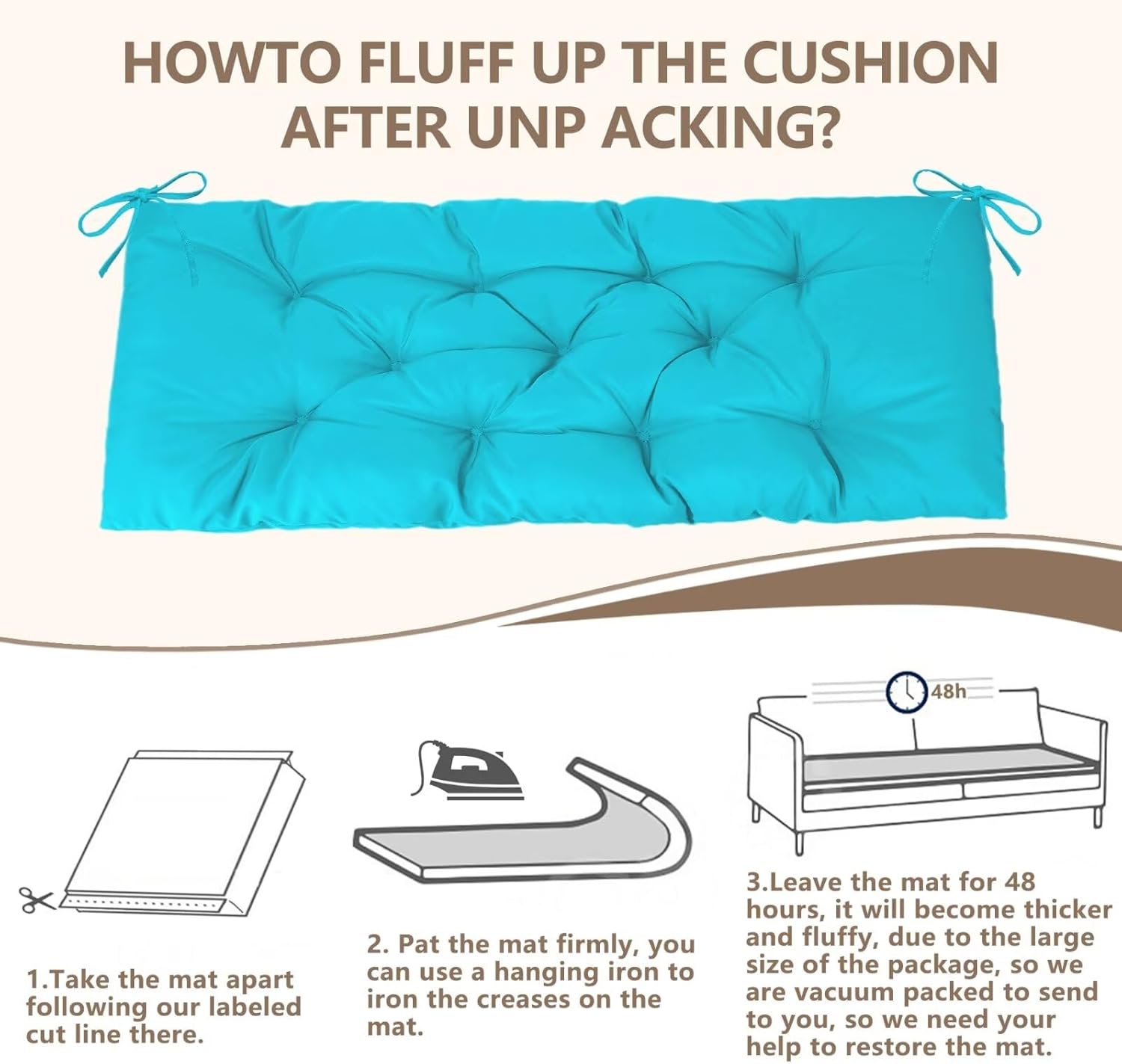 47.3 in Waterproof Indoor/Outdoor Garden Bench Seat Cushions,Thicken Patio Bench Soft Rocking Chairs Pad Lounger Seat for Wicker Loveseat Settee(47.3 X 19.6 X 3.9 in Turquoise)