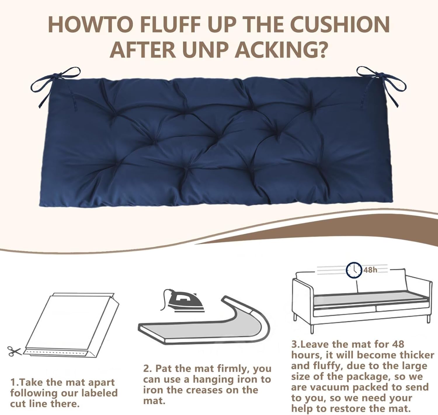 - ✨✨✨ Designed by right size:Navy Bench Loveseat Settee Can be Used as seat or back. Cushion (LxWxH):47.3 x 19.6 x 3.9 Inch