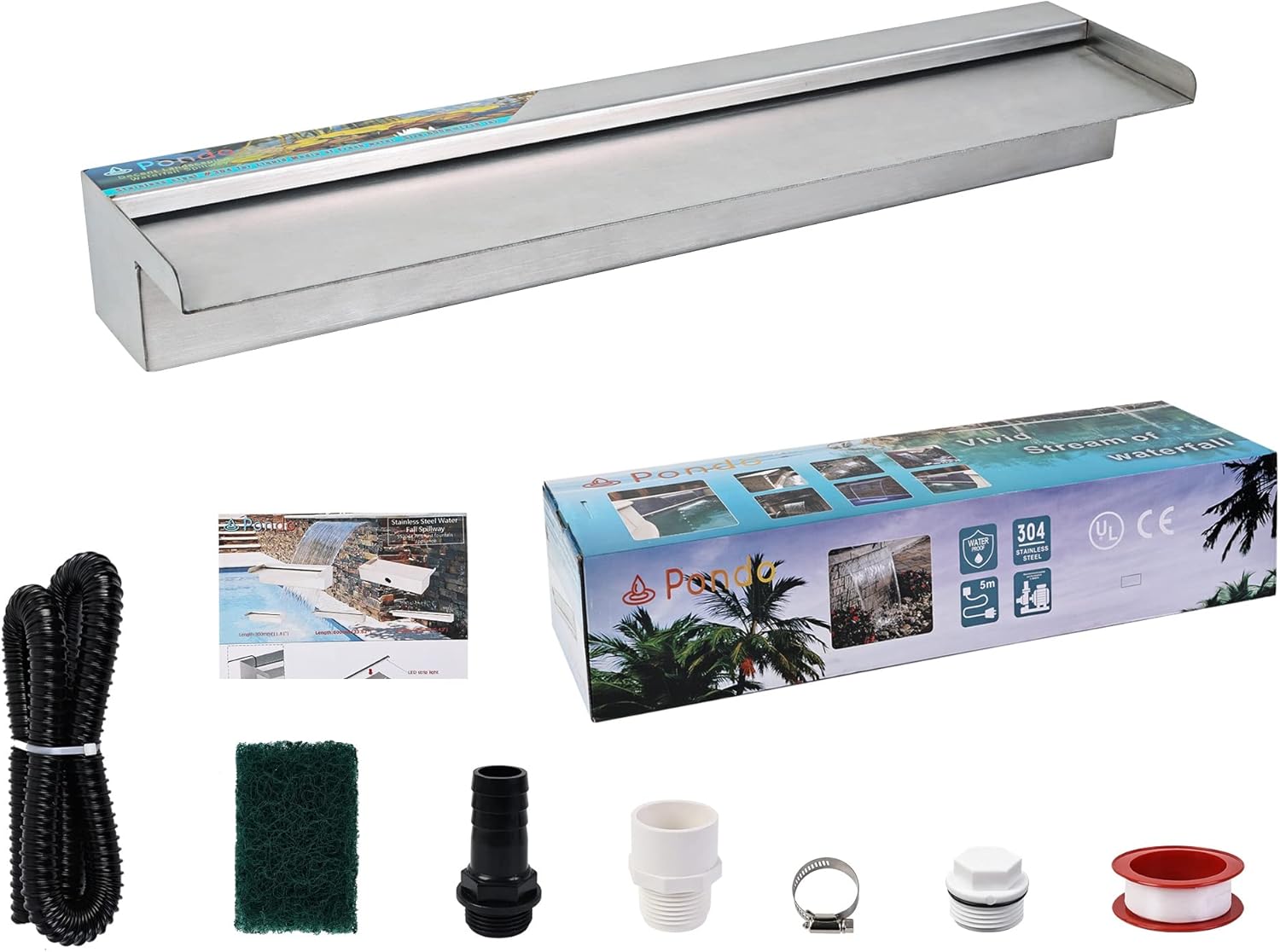 YUDA 24 Inch Water Pool Fountain, 304 Stainless Steel Pool Waterfall with Wider Water Flow Platform, Professional Waterfall Spillway for Sheer Descent Garden Outdoor