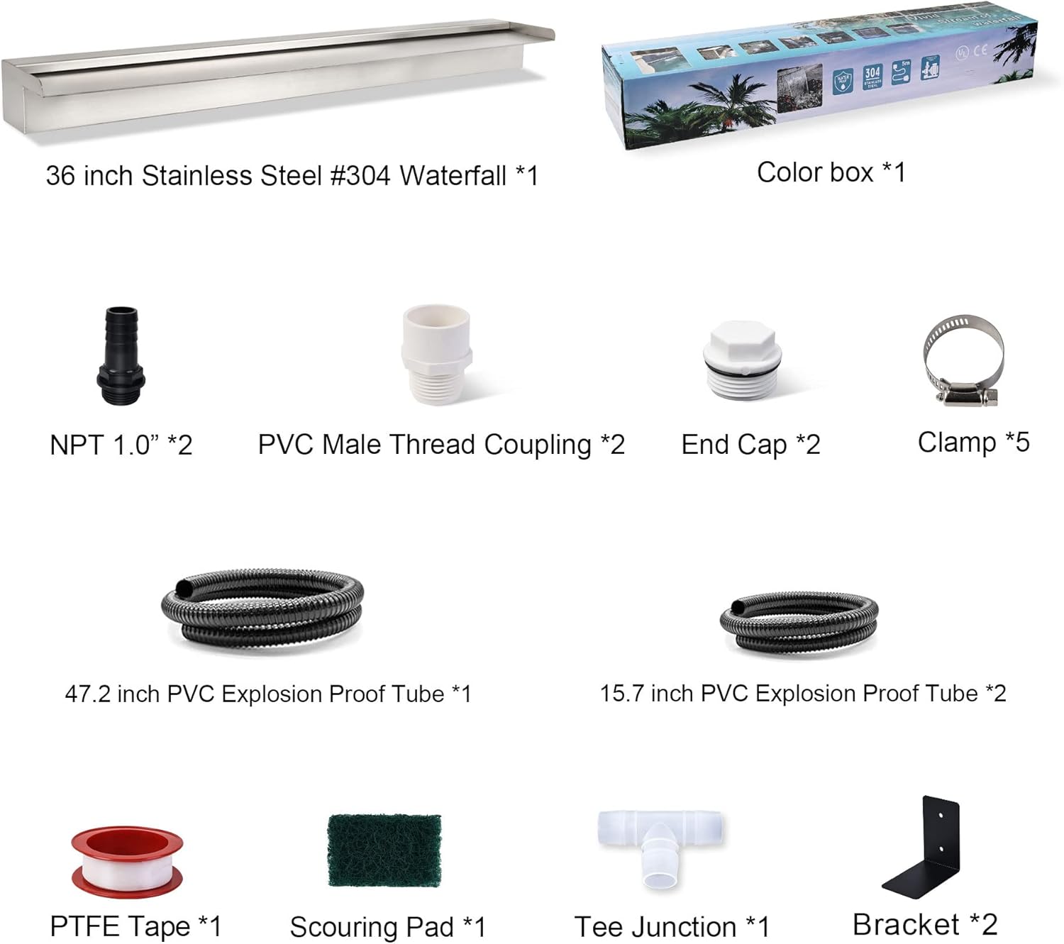 - Material and Function: This pond fountain will add a decorative touch to your pond or swimming pool and let you enjoy the relaxing sounds of the water for a sense of calm and well-being. The waterfall is made of 304 stainless steel, top wide open which is specially designed to guarantee a constant and uniform water flow.