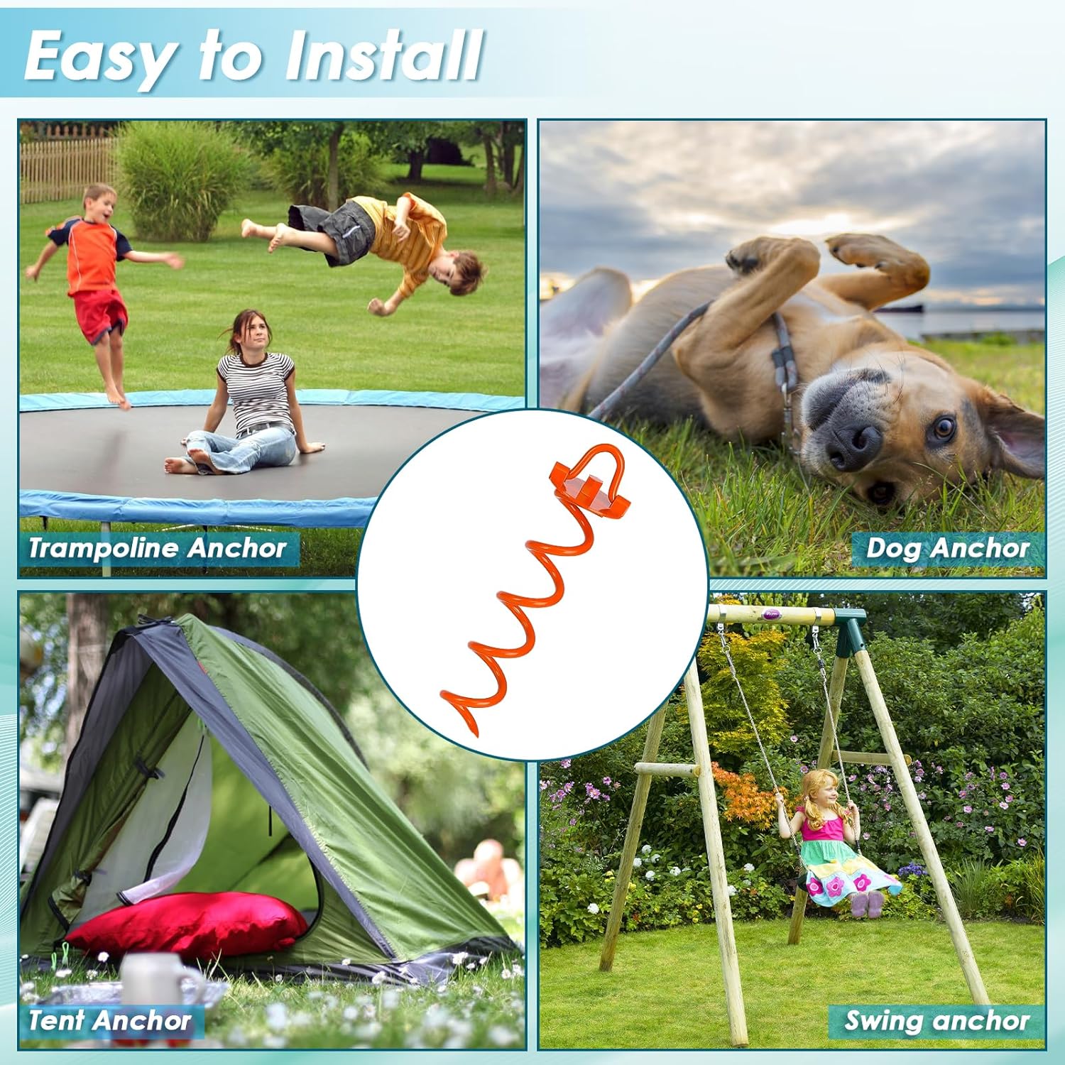 - Multiple Applications: Our ground anchors heavy duty can secure your various outdoor activities. Ideal ground stakes for trampolines, tents, swing sets, gazebos, dogs, canopies, garden sheds and more.