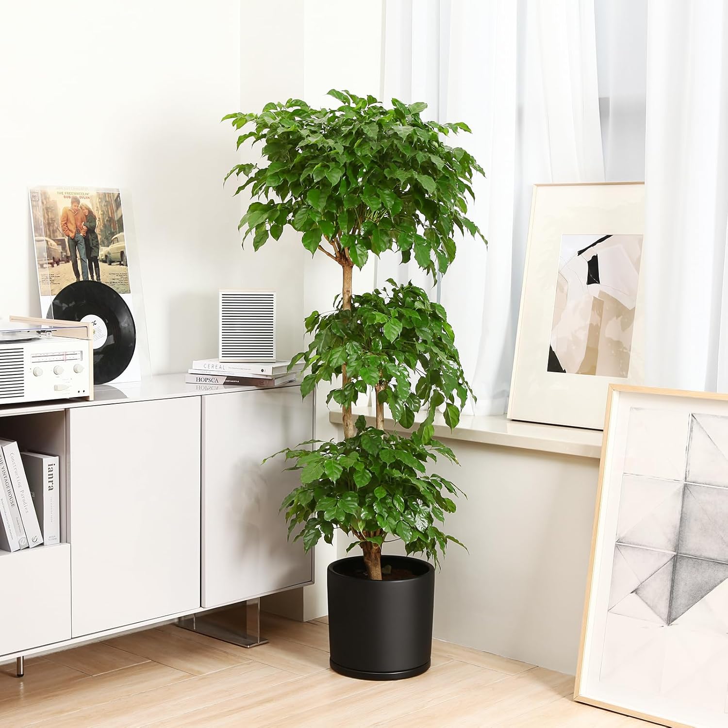 Kazeila 12 Inches Ceramic Planter Pot - Saucer and Drainage Hole - Full Glazed - Matte Black