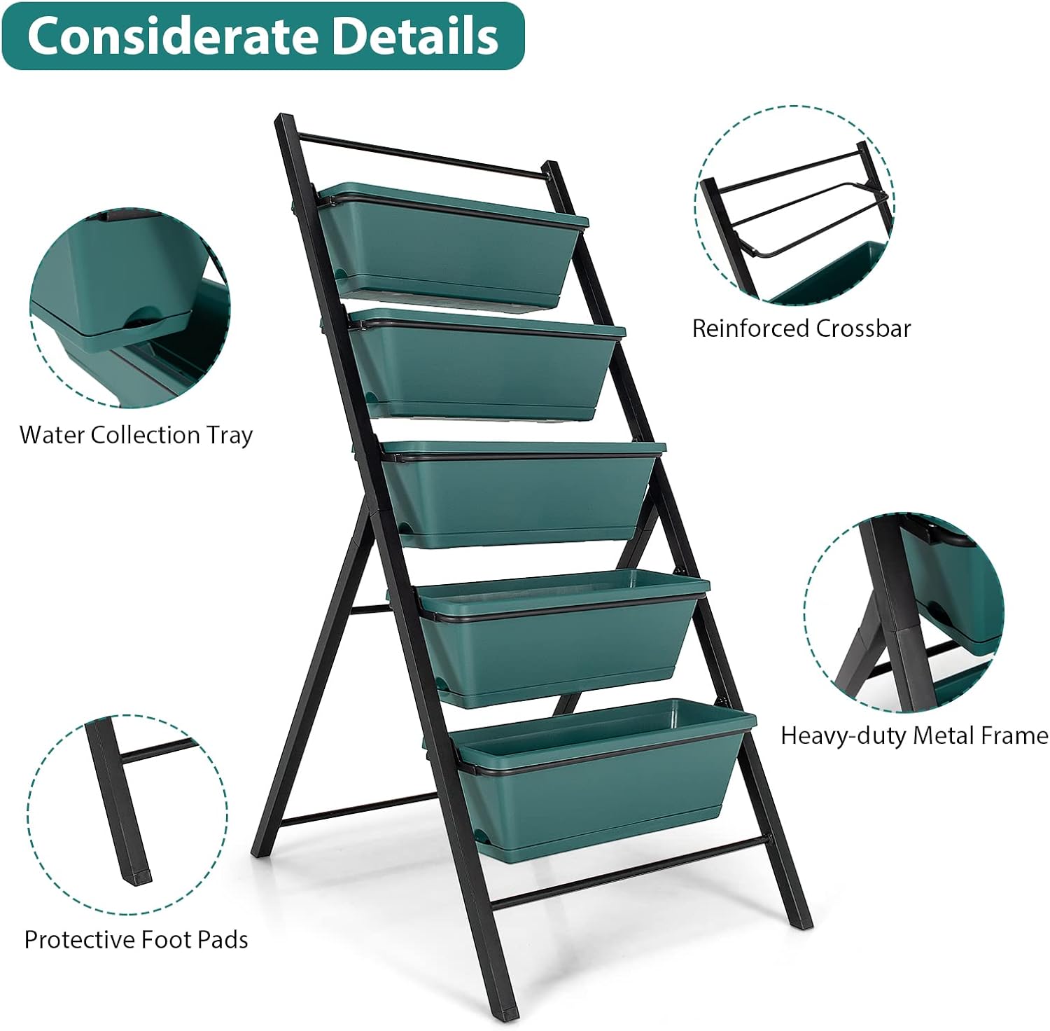 - 『5 Plant Container Box』: This 5-tier vertical garden is equipped with 5 PP made container boxes, which are durable for long-term use in both outdoor and indoor environment. Each box can hold 0.5 cubic feet volume of soil and its weight should no more than 22lbs. Your plants could have a warm home and grow healthily.