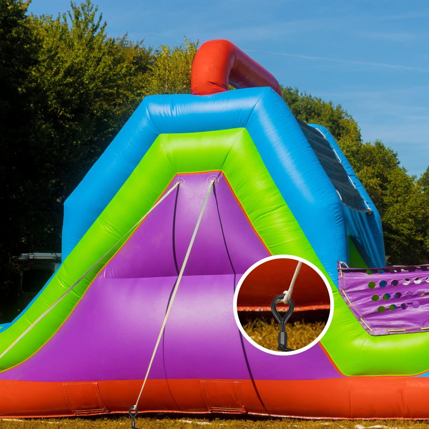 - EASY TO USE TRAMPOLINE STAKES: The trampoline tent's stability may be achieved by fully inserting the ground anchor screw into the ground with the assistance of a drilling machine. The spiral design of the ground anchors makes it much easier and faster to twist into the ground deeply