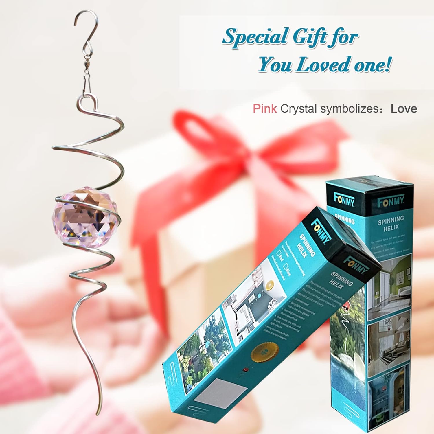- 【PREMIUM CRYSTAL SUNCATCHER】The spiral with crystal is a special sun catcher rainbow maker, it’s Super Sparkly under sunshine. You can also add a motor(not include) to let the spiral to spin ,while spiral tail rotating (it can’t spin by itself.), the crystal ball seems to move up and down like floating and dancing in air while spiral tail rotating, presents the magical visual illusion.