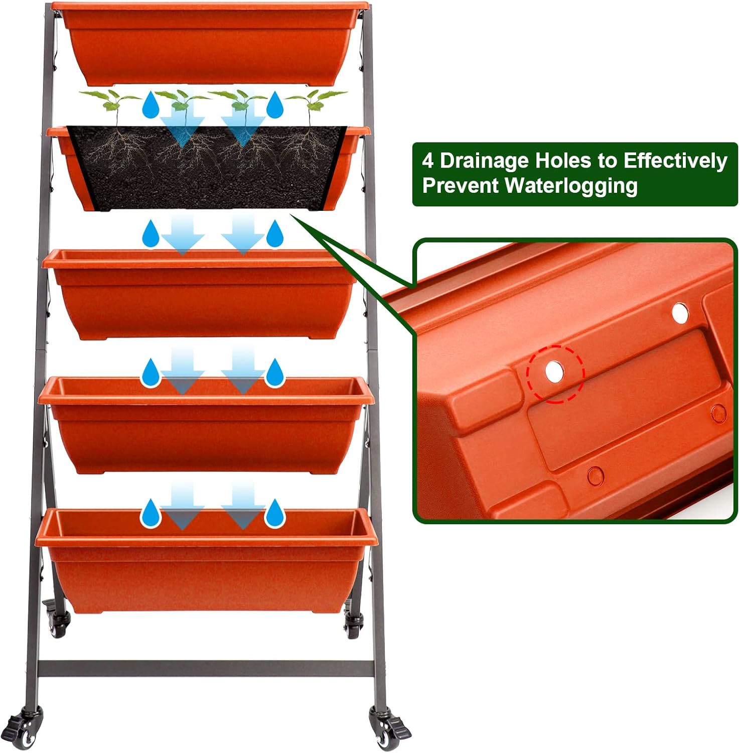 EDOSTORY 4.5 FT Height Vertical Garden Planter Removable Brick Red Raised Bed Box with 5 Container Boxes,Digging Claw Gloves,Trowel,Purning Shears for Outdoor Vegetables Flowers