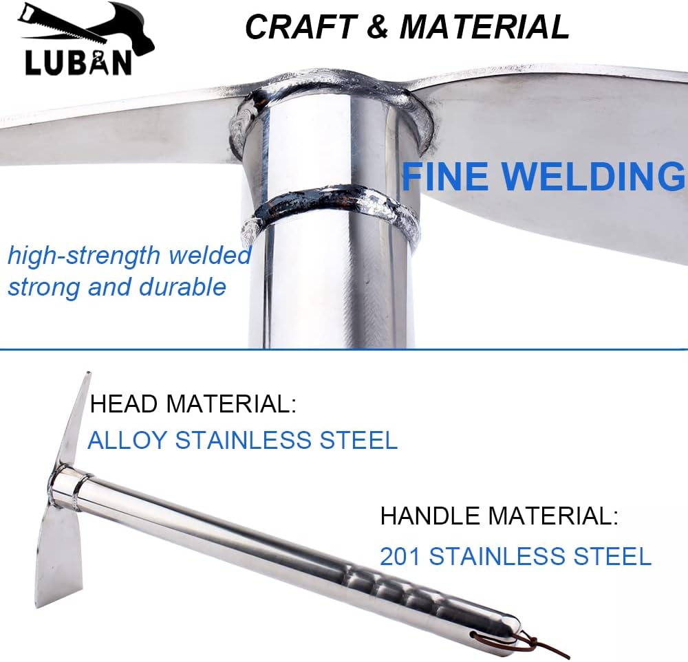 - DURABLE: Stainless steel hoe is durable, anti-corrosion, no rust, easy to clean