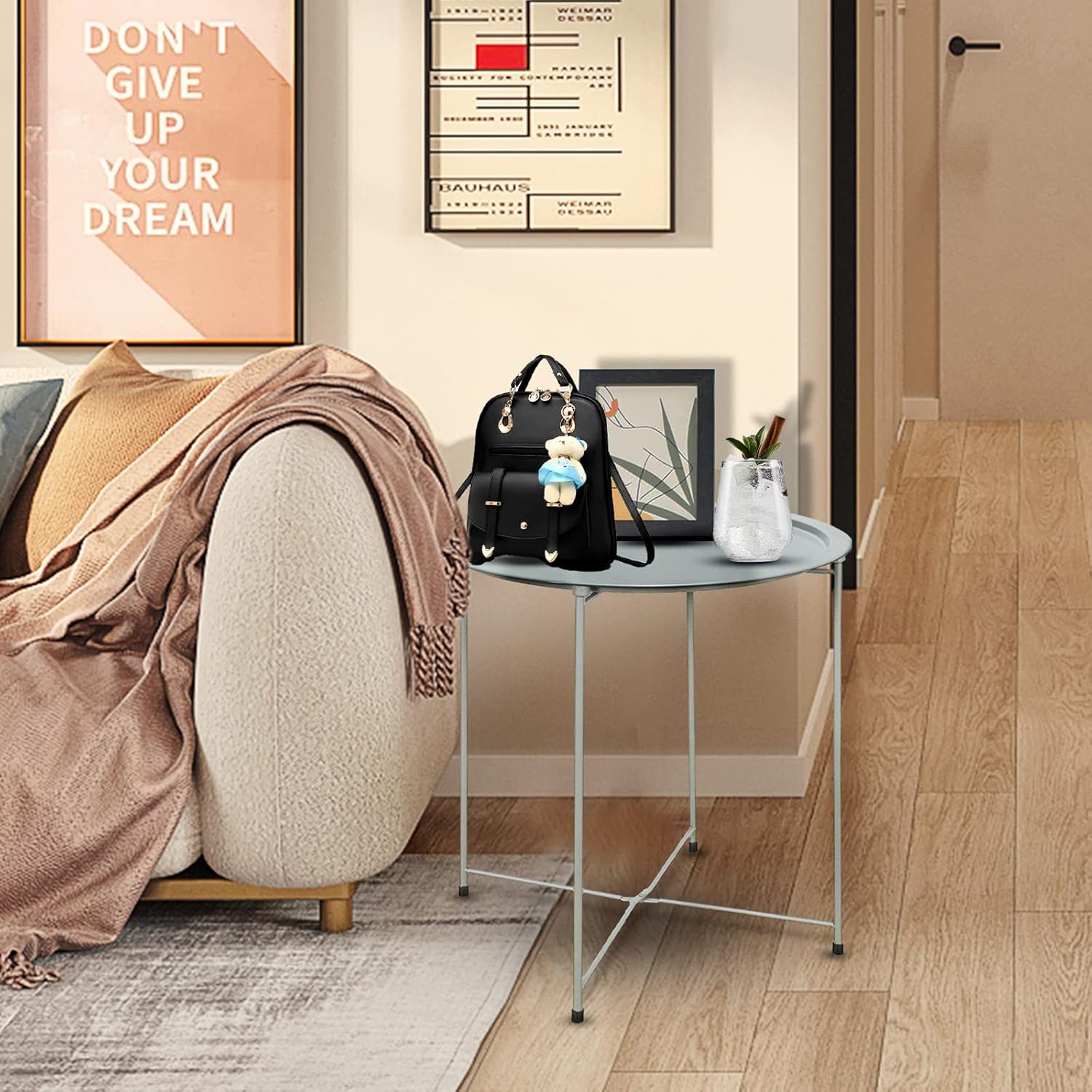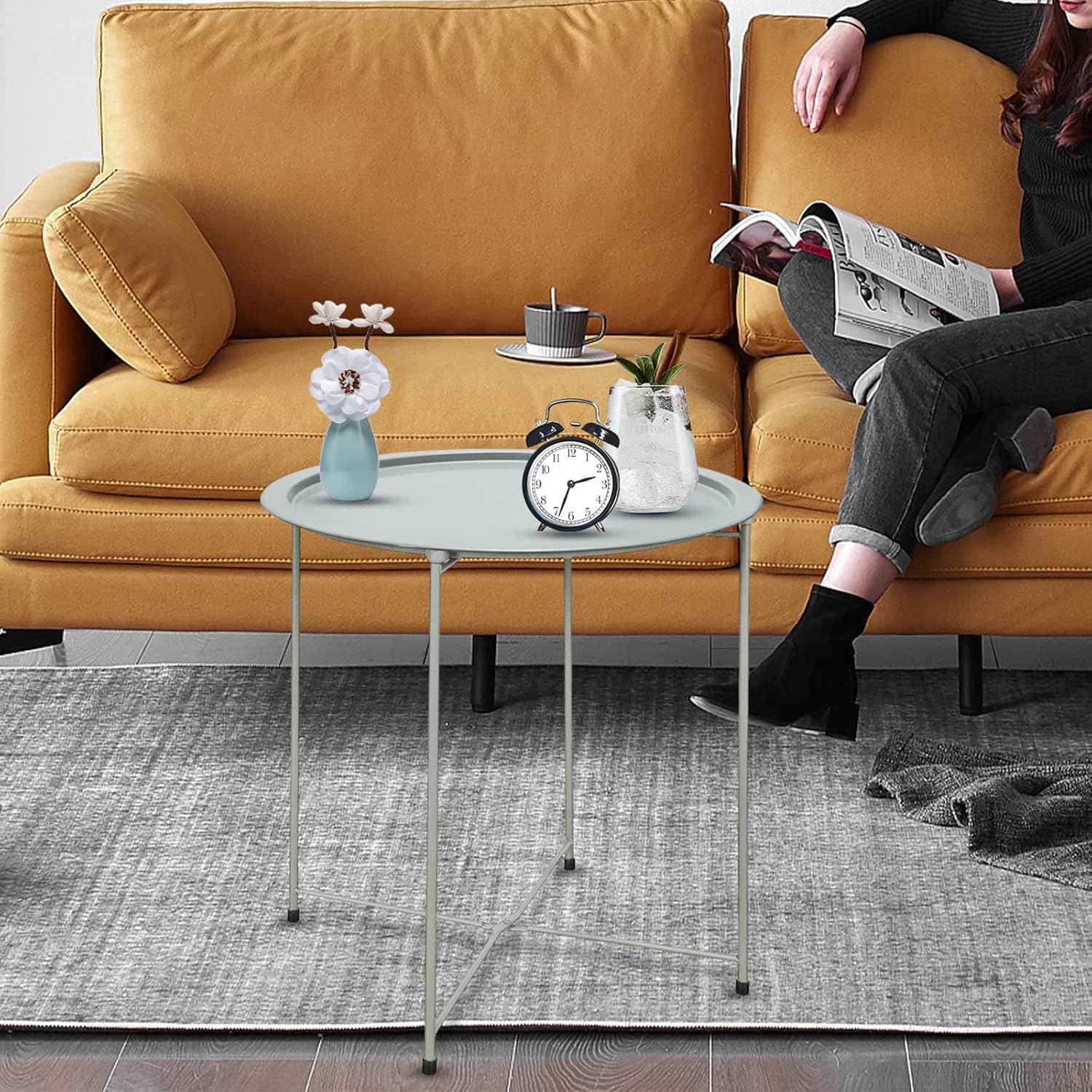 - âś” FOLDING EASY & PORTABLE: With a convenient designed, the end table can easy to Folding up and down quickly, When the table was folded, it takes up small space . Removable and portable, it is a temporary or picnic table when you need.You can fold or unfold it in a few seconds without any assembly.
