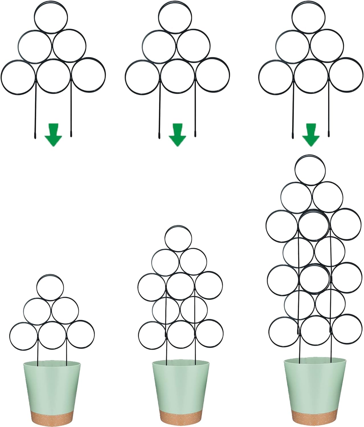 Trellis for Climbing Plants Indoor 15.7 Inch, Stackable Garden Trellis for Potted Plant Support, 3 Pack Small Houseplant Metal Wire Trellis for Vines Pothos Rose Monstera Accessories (Black)