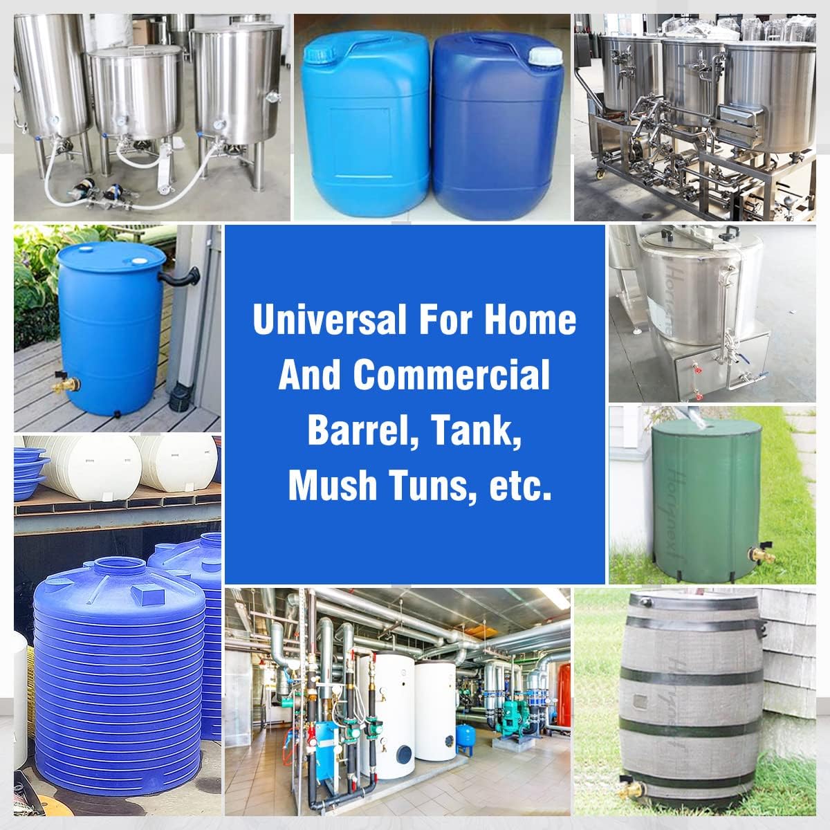 - INSTALL:Drill a 1 inch hole on 25/50/55/5 gallon bucket and the water spigot for rain barrel kit adapts to 1/100 ~ 1/2 inch thick wall, universal design for open lid barrels or containers, installing tools will be packed in your package.