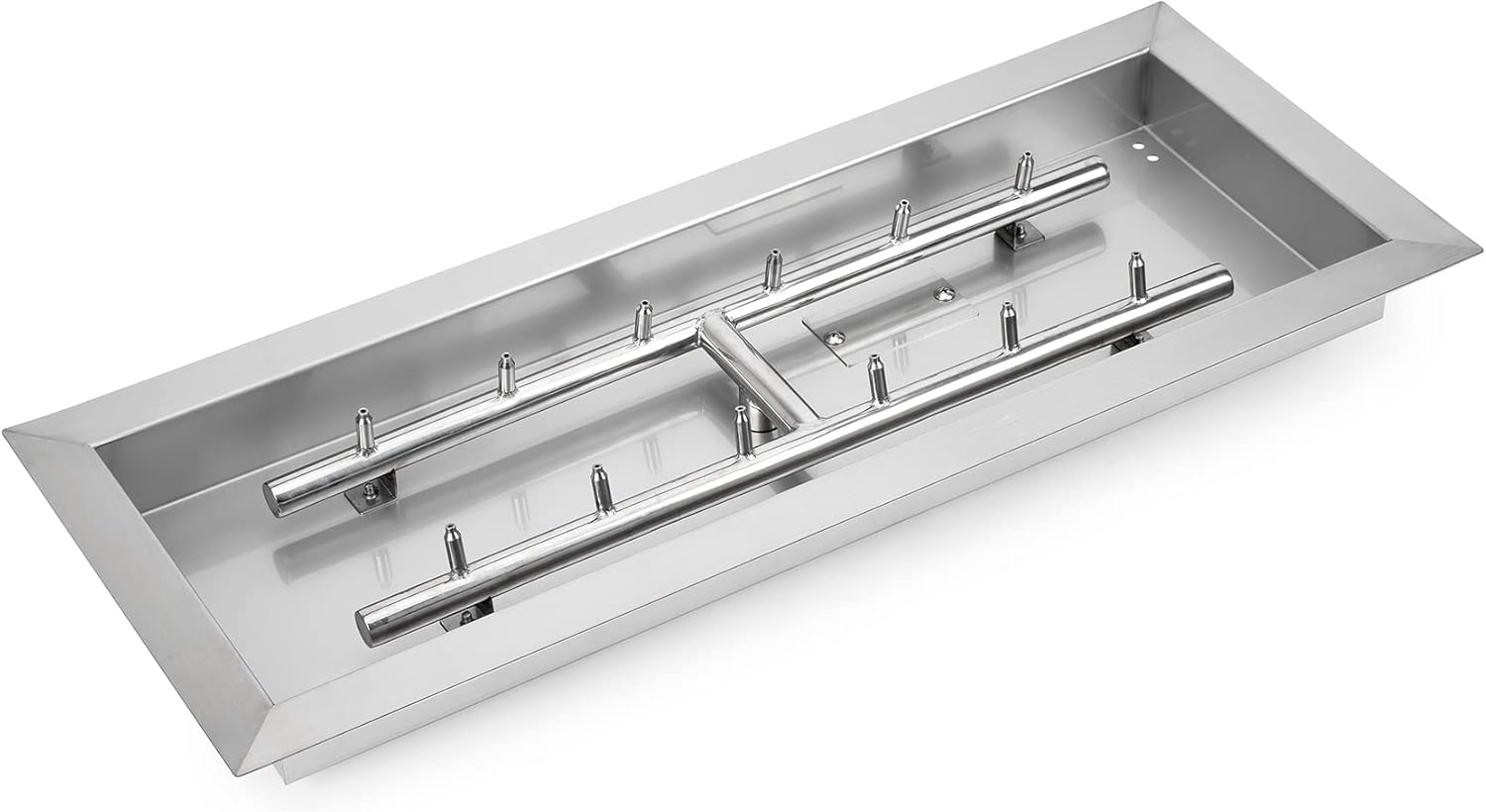 - Easy Installation: All you have to do is to drop this burner pan into your fire pit, hook up to a gas source, add some fire glass and youβre done (gas hoses and connection kit are not included).