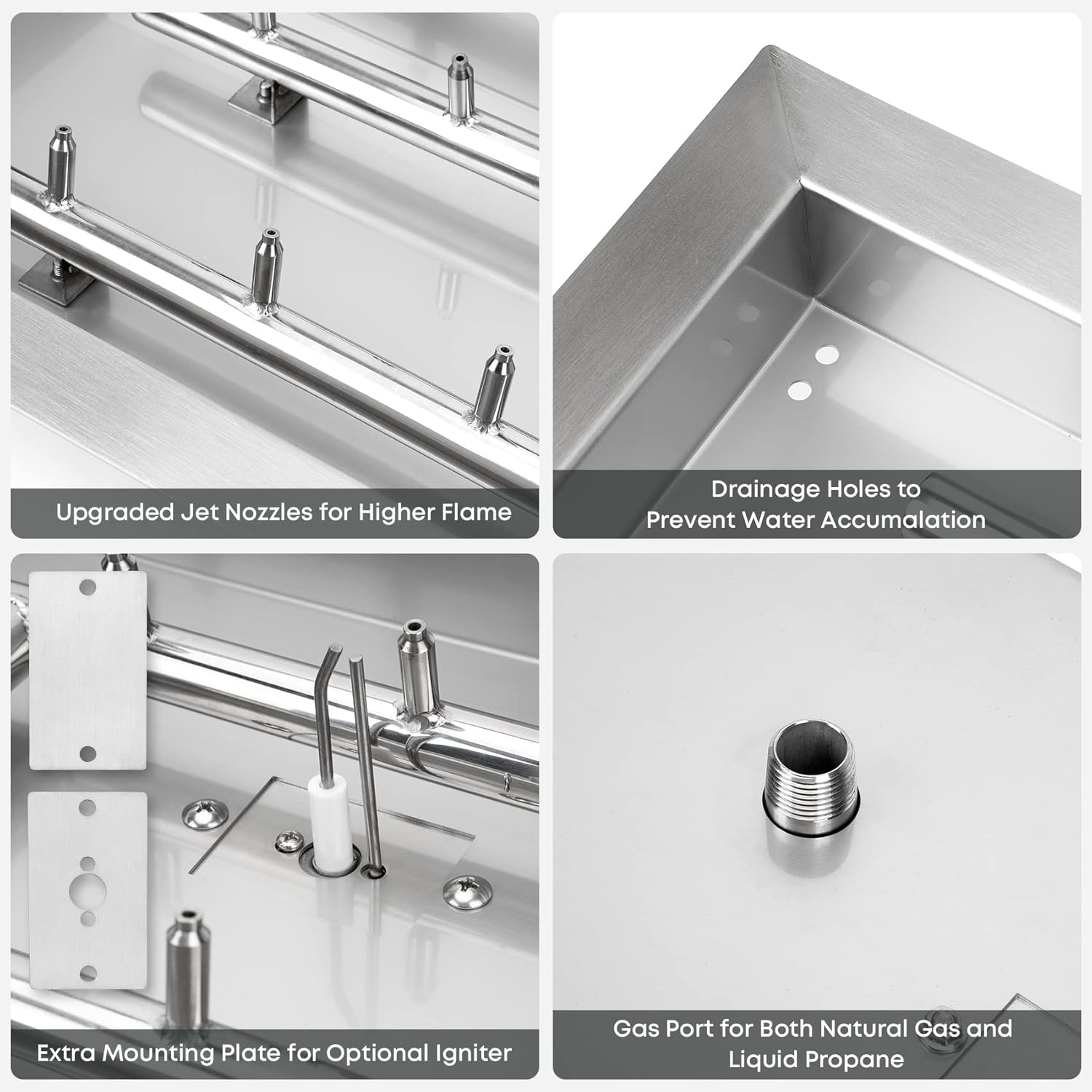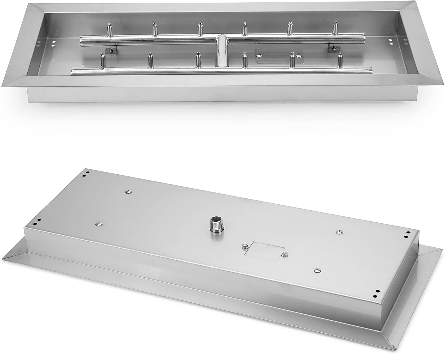 Stanbroil 24" x 8" Upgrade Rectangle Fire Pit Jet Burner Pan, 304 Stainless Steel Natural & Propane Gas Firepit for Outside, High Flame, 90k BTU Max