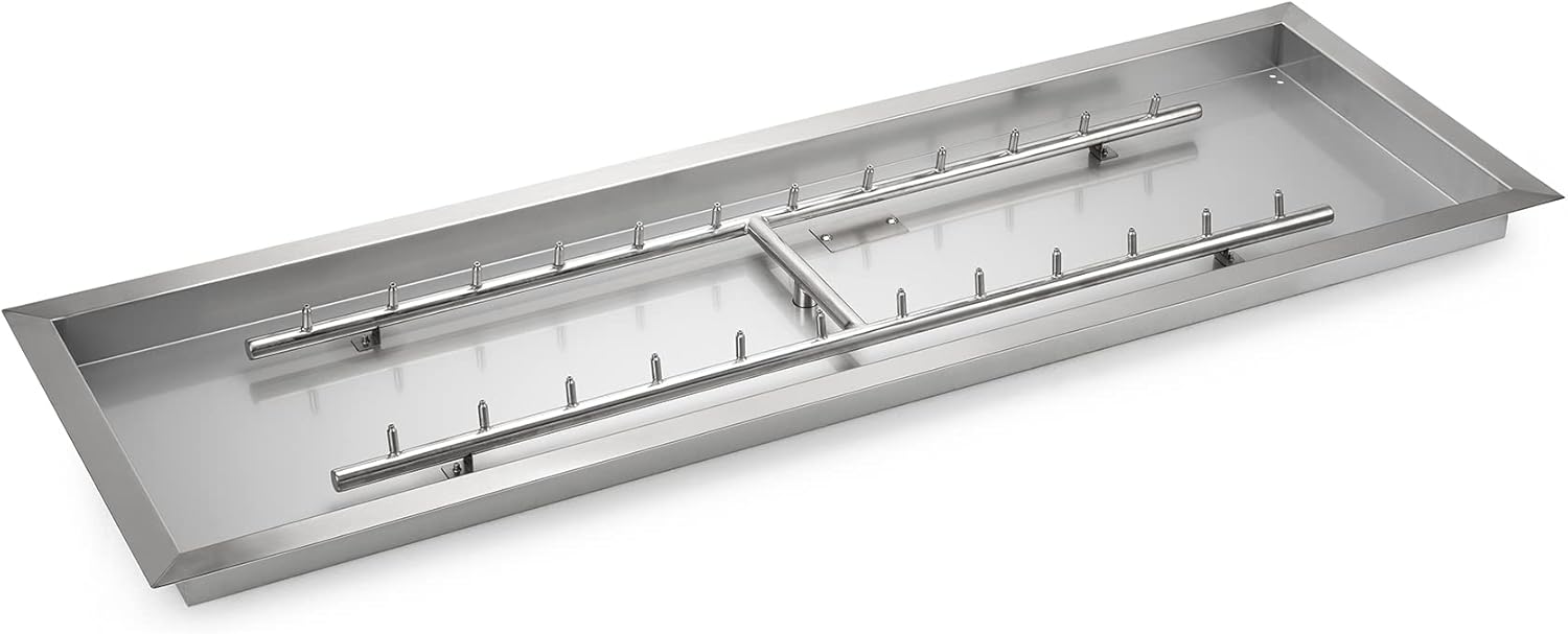 - Easy Installation: All you have to do is to drop this burner pan into your fire pit, hook up to a gas source, add some fire glass and youβre done (gas hoses and connection kit are not included).
