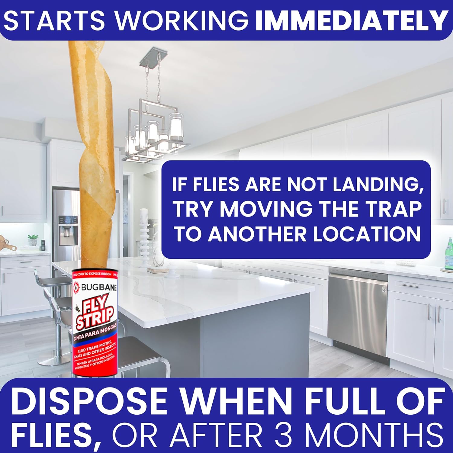 - NON-TOXIC. ODOR AND BAIT FREE. Unlike many sticky fly traps, our fly tape indoor for home contains no bait and is safe for all. Just make sure not to touch the sticky part of the flypaper strips.