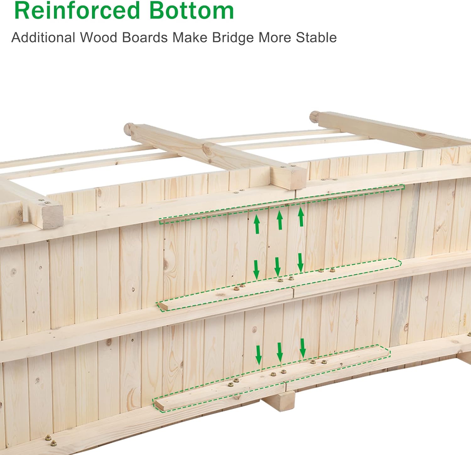 - ✔ [Solid Construction] Additional 3 wood boards reinforced the bottom, which make wood bridge more stable. Max weight capacity up to 500 lbs.
