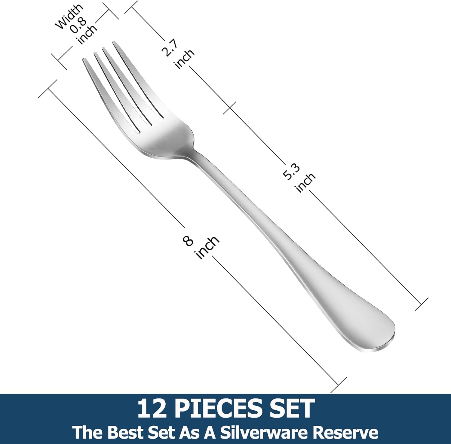 12 Piece Dinner Forks Set, Food-Grade Stainless Steel Silverware Forks, Cutlery Fork, Metal Fork for Home, Kitchen or Restaurant, Mirror Polished, Dishwasher Safe - 8 Inch