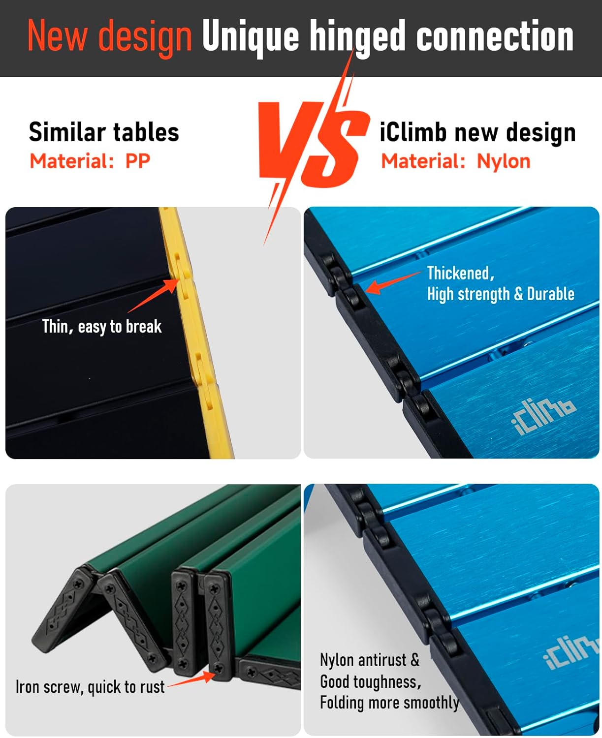 iClimb Ultralight Compact Mini Beach Picnic Folding Alu. Table with Carry Bag, Two Size (Blue - S)