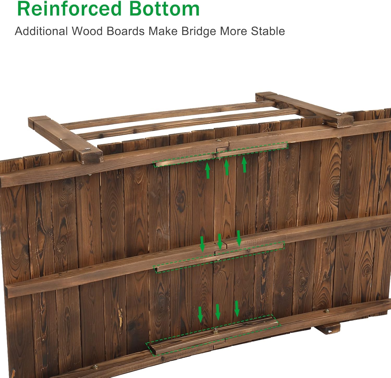 VINGLI 4 ft Garden Bridge, Arch Walkway Wooden Bridge with Safety Rails Carbonized Finished, Decorative Landscaping Footbridge for Koi Pond, Dry Creek Bed, Garden Pathway or Rustic Wedding Decor