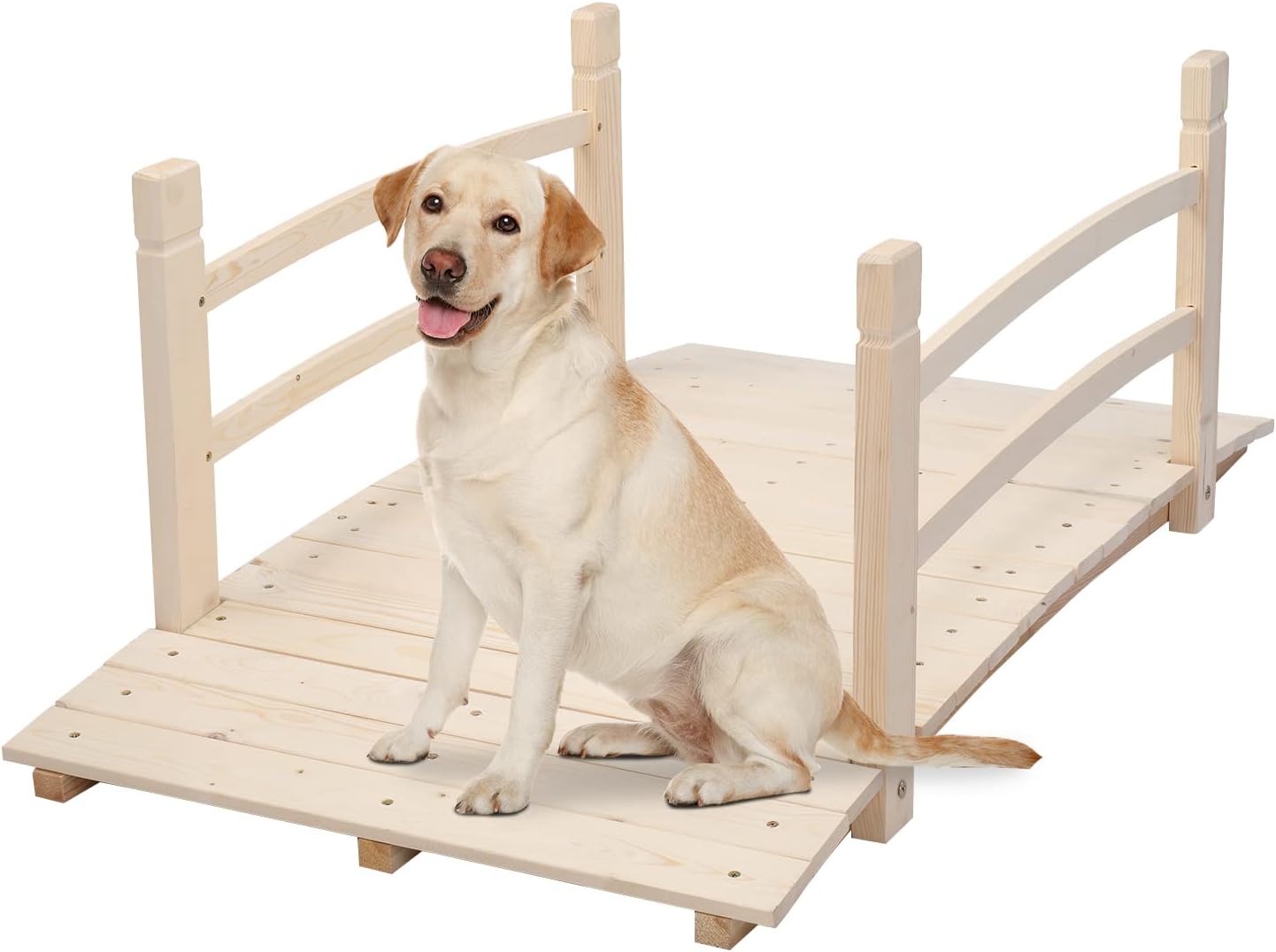 - ✔ [Solid Construction] Additional 3 wood boards reinforced the bottom, which make wood bridge more stable. Max weight capacity up to 400 lbs.