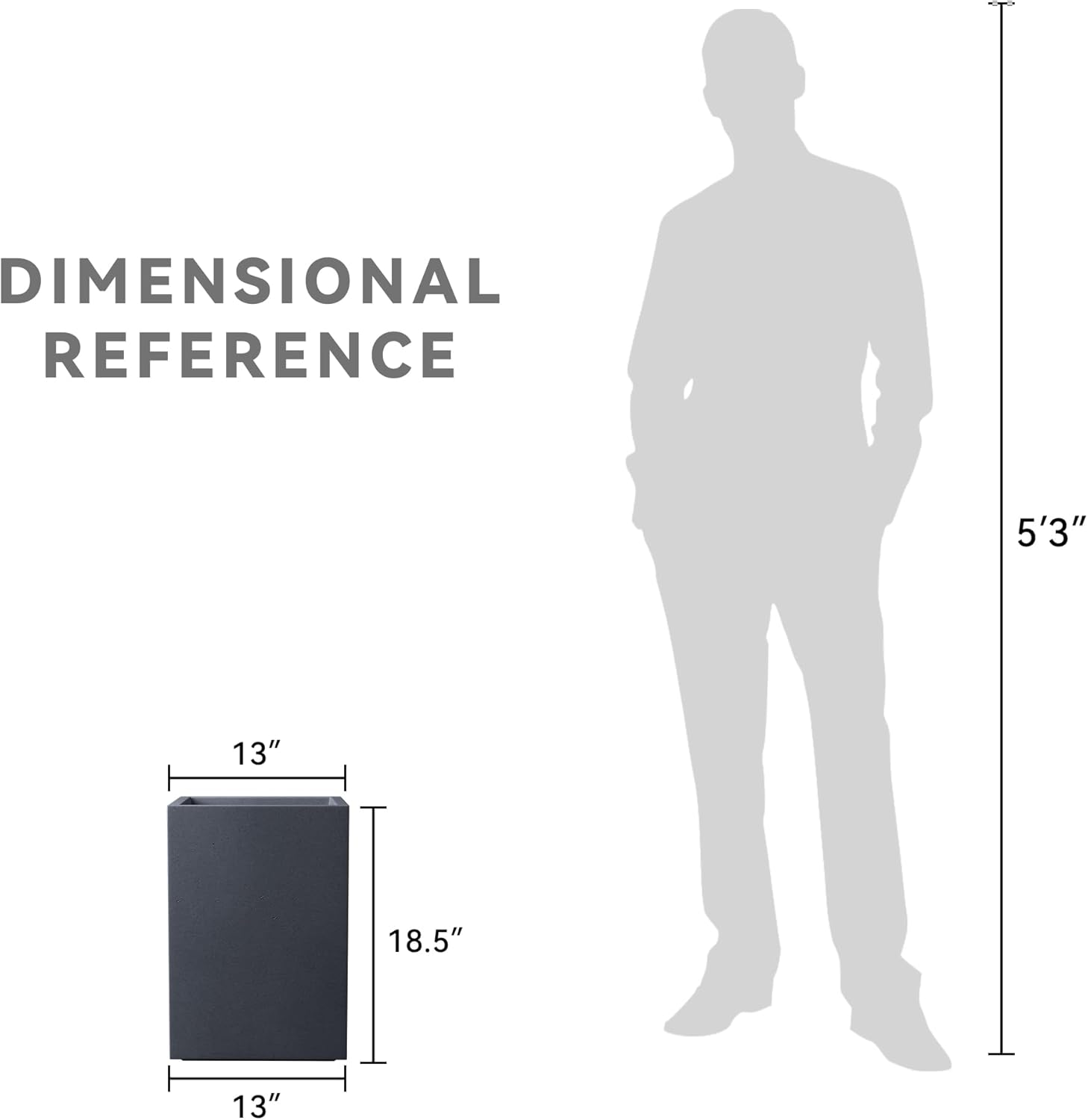 Kante 18.5" H Tall Rectangular Concrete Planters, Outdoor Indoor Lightweight Plant Pots with Drainage Hole and Rubber Plug, Modern Style for Home Garden Patio, Charcoal