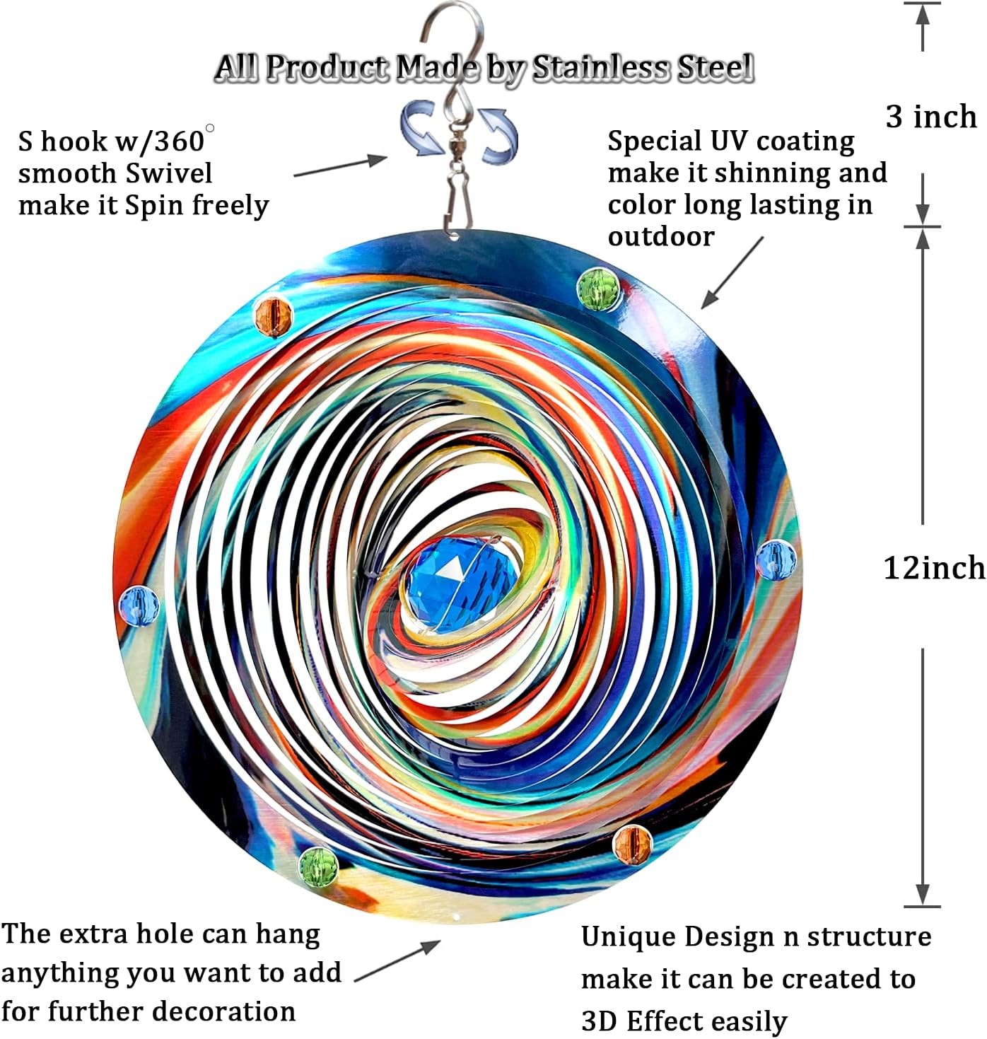 FONMY Mandala Wind Spinner w/Crystal Ball-Blue Plenet 3D Stainless Steel Hanging Spinners Worth Gift Christmas Decoration Indoor/Outdoor Garden Décor Kinetic Yard Art 12 Inches Wind Sculpture
