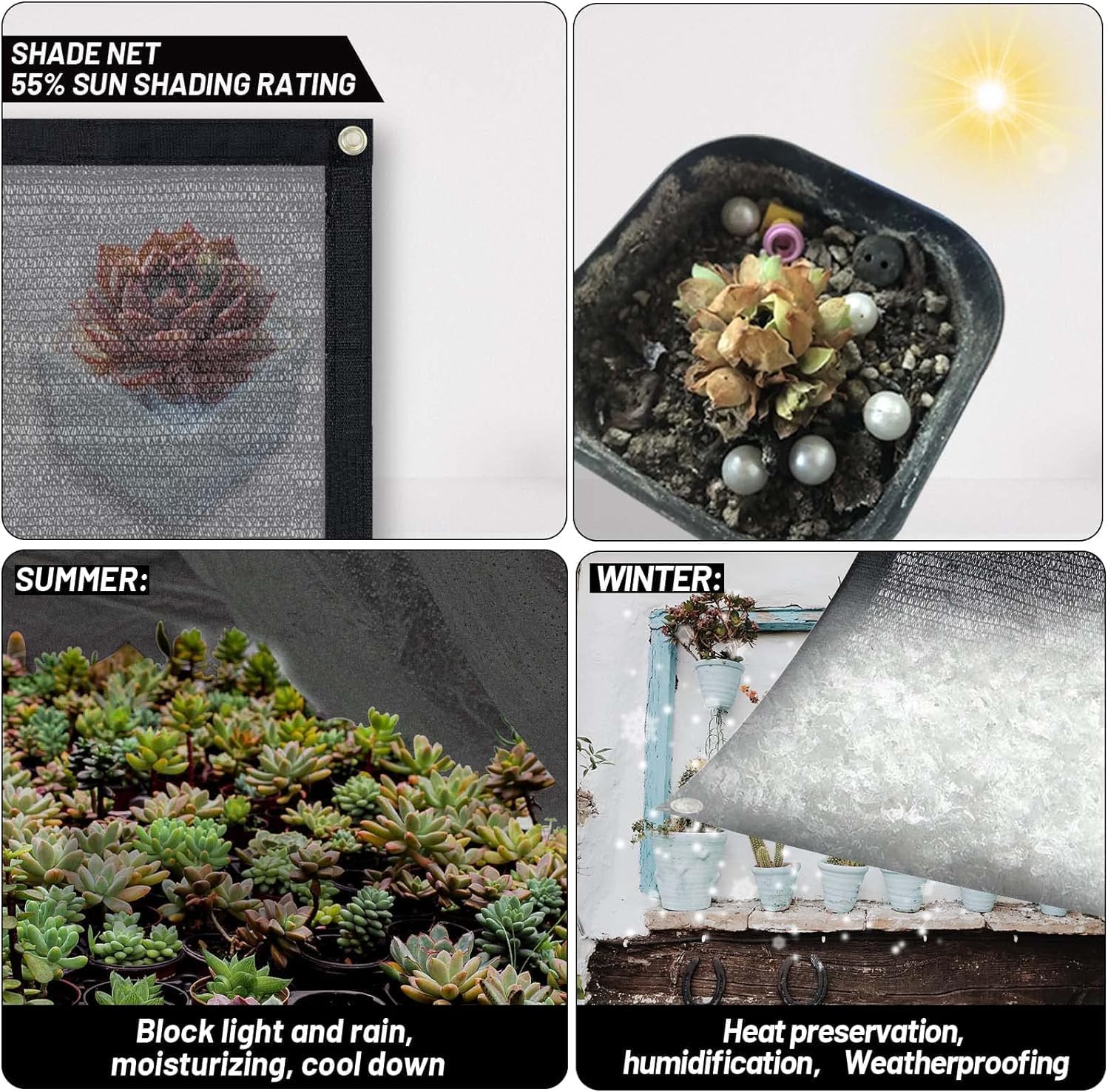 - 【55% Shading Rate】Made of 100% New High Density Polyethylene (HDPE) fabric material, has a shading rate up to 55% can avoiding direct sunlight while allowing free air circulation.