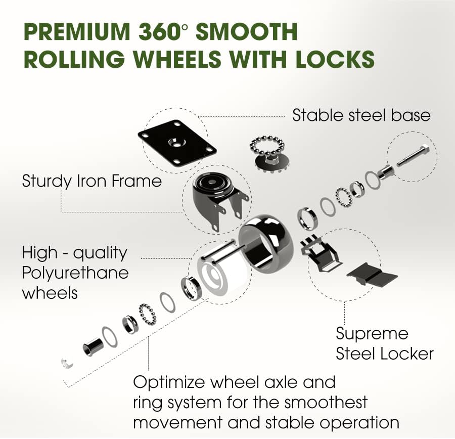 - 360 DEGREES LOCKABLE WHEELS FOR EASY MOVEMENT: Move plant pots outdoor or large planters for outdoor plants on carpet, soil ground, and lawn with 360 degrees Polyurethane wheels; Locking wheels provide secure positioning wherever needed