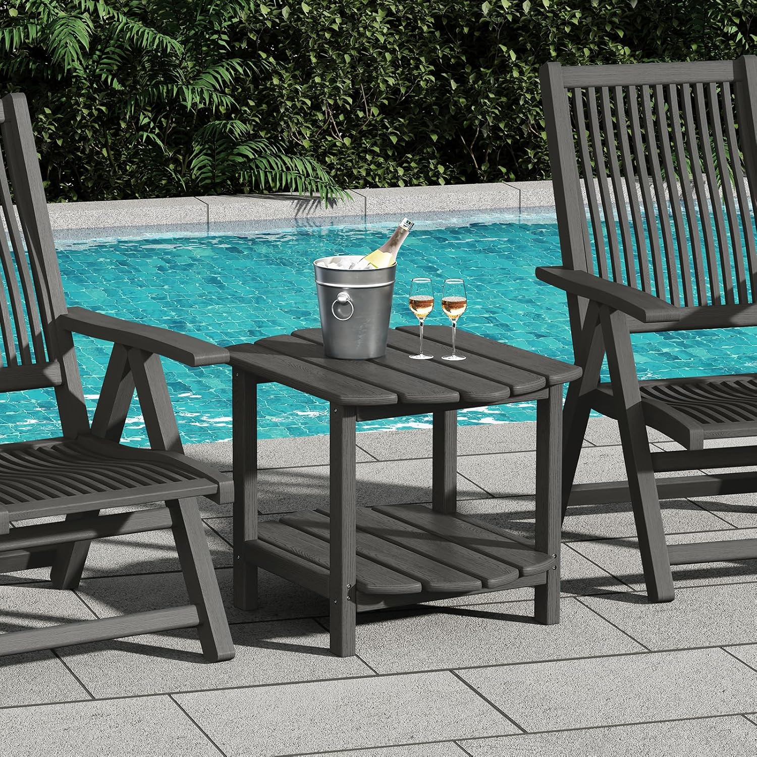 Small Outdoor Side Tables Modern 2-Tier Adirondack Table Rustic End Table HDPE Storage Shelf Industrial Corner Rectangle Coffee Table for Patio Garden Balcony Backyard Pool Farmhouse Home Grey