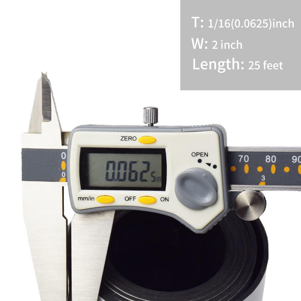 - WHAT YOU GET- You will get adhesive solid neoprene rubber sheets by 1/16 (.062)" Thick X 2" Wide X 25' Long, and you are protected with our 100% Guarantee for a refund.Please contact us if you have any questions.