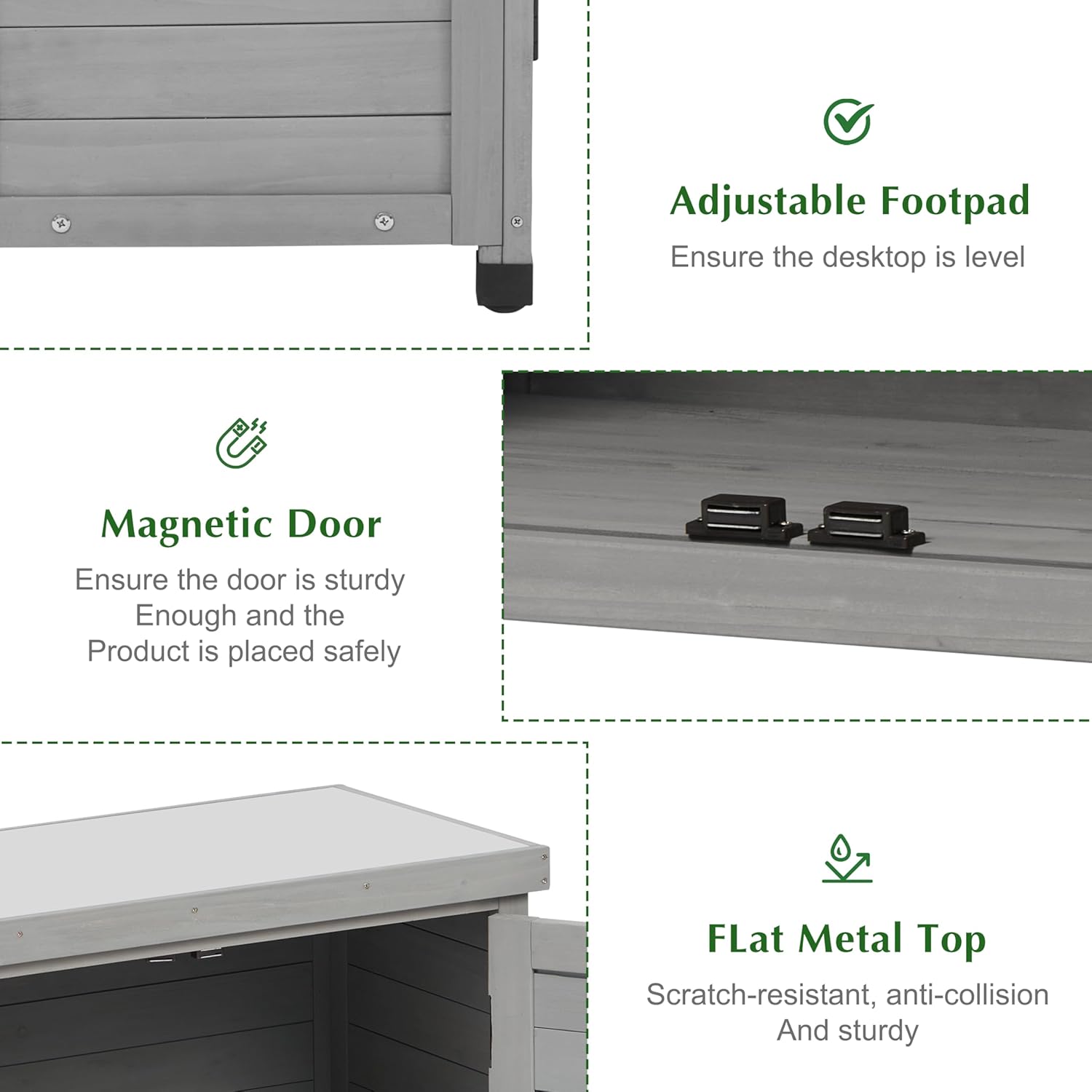 - 【PATENTED FARMHOUSE DESIGN】 Our storage cabinet and potting bench table is made from premium cedar wood with water-based gray coating, designed for classic farmhouse style with US. Patent application