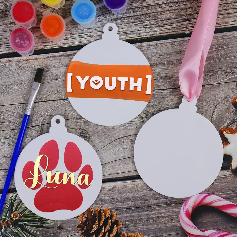 - DIY Fun Christmas Ornaments: these circle blanks acrylic are great for DIY Christmas ornaments. You can paint any pattern on it with your kids, families, boyfriend, girlfriend. Such as: "Merry Christmas" word, "I love you mom" words, any messages of this years milestone that you want to express. And hanging them on Christmas tree, create an unique Christmas ornaments and leave unforgettable memory.