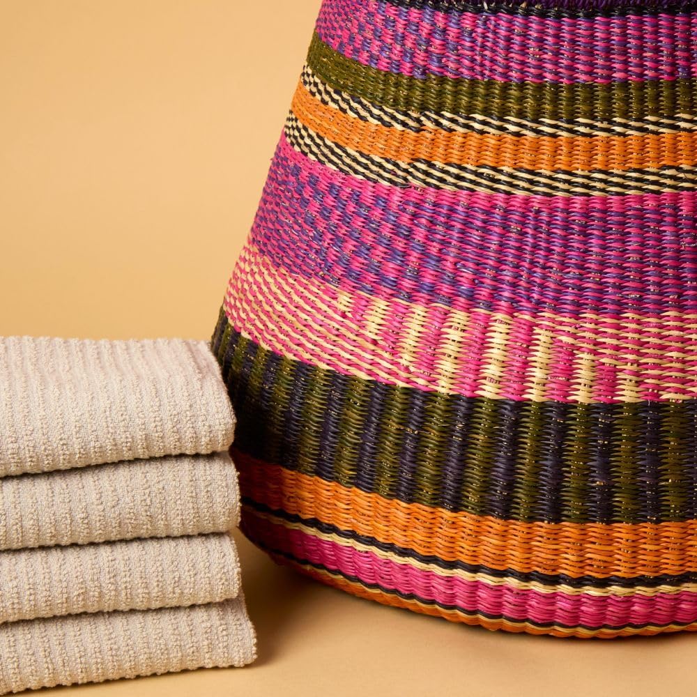 - HANDCRAFTED DESIGN: Traditional African Bolga basket featuring a distinctive pot shape with navy checkered pattern, handwoven from natural elephant grass with a sturdy handle. No wetting and reshaping needed. Arrives ready to use