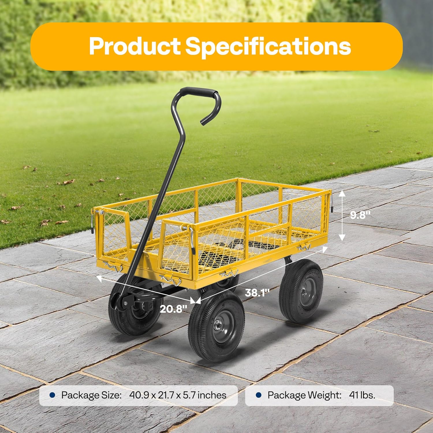 - REMOVABLE SIDES - You don't have to worry too much about the size of the cargo, even if the item is large; Just remove mesh sides and use it as a flatbed trailer; The detachable sides also add versatility when carrying larger loads; This dolly will be a tremendous help in general yard work, transporting anything too heavy or awkward to easily carry