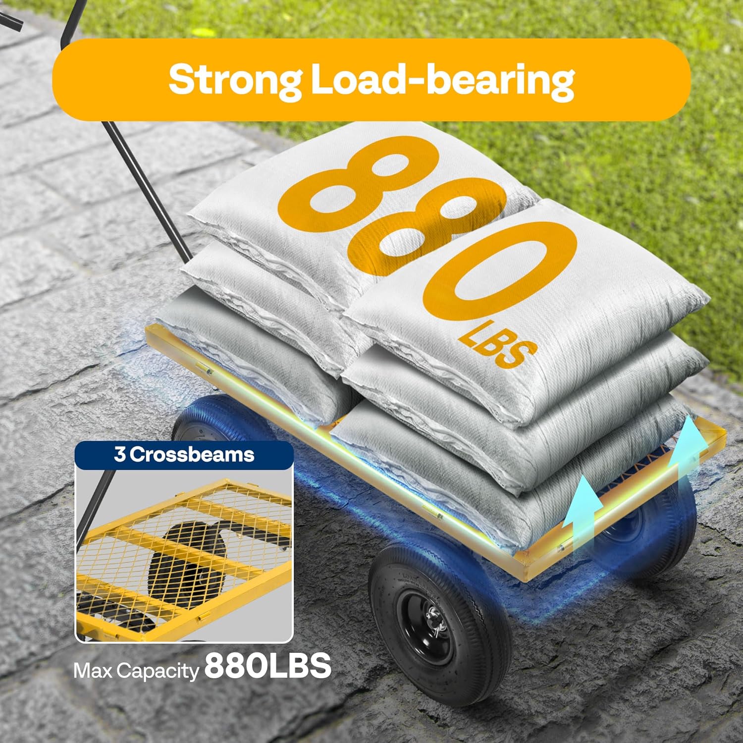 - POWERFUL LOAD AND LARGE CAPACITY - VIVOHOME's multi-functional garden cart has meticulous workmanship and strong design sense; Its maximum load can reach 880 lbs., which is more than twice that of competitors; there's nothing you cannot pull away with this practical and convenient cart (to prolong its life, long-term heavy loading is not recommended)