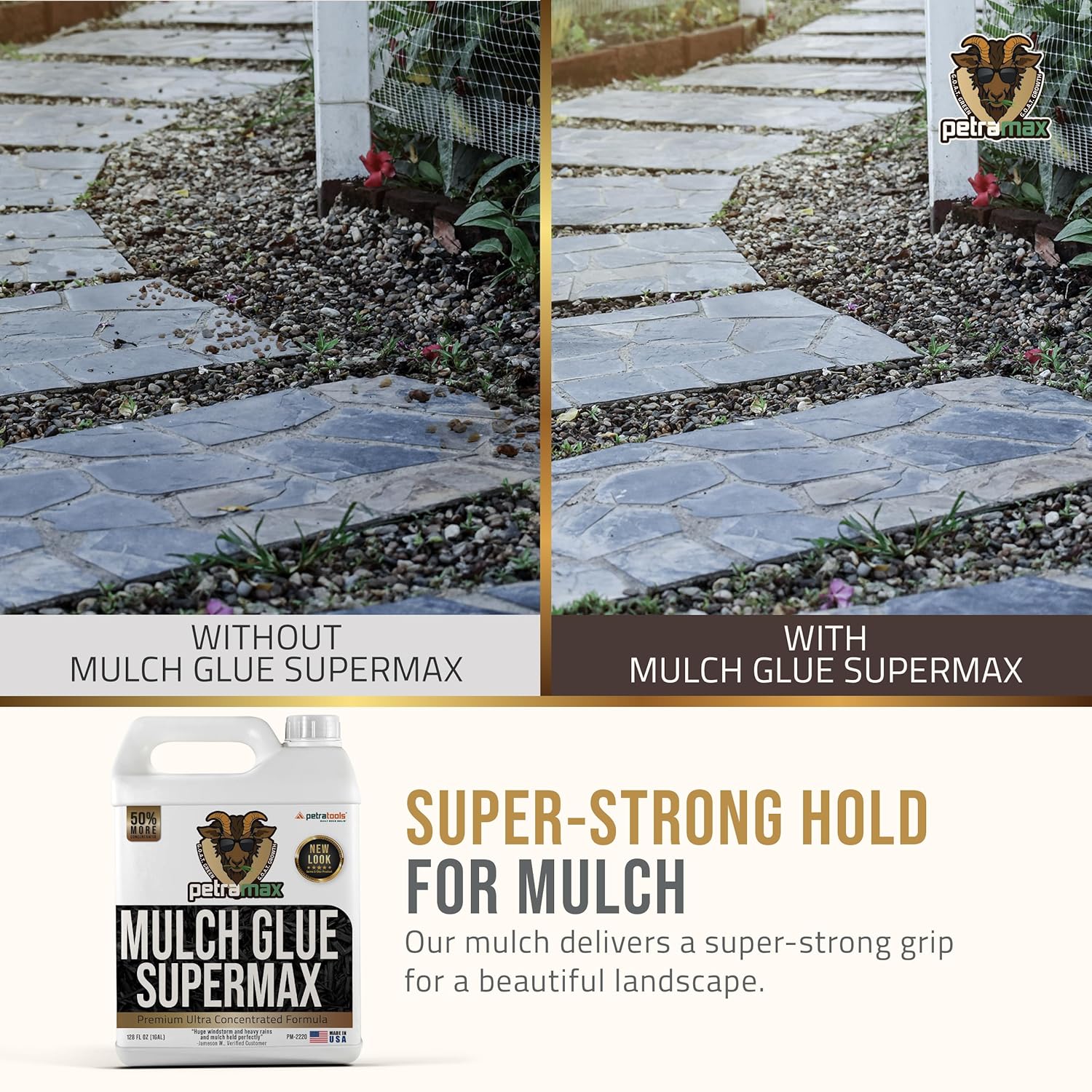 PetraMax Mulch Glue for Landscaping - Max Concentrate, Weed Barrier, Non-Toxic Pea Gravel Binder, Rock & Gravel Stabilizer, Dries Clear (Super, 1G)