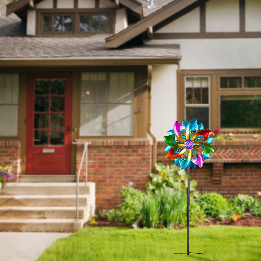 - 【Colorful Wind Spinner】The double sides blades of the metal wind spinner are made up of multi-color, paired with gold beads to make your garden stand out and catch the eye of your neighbors.