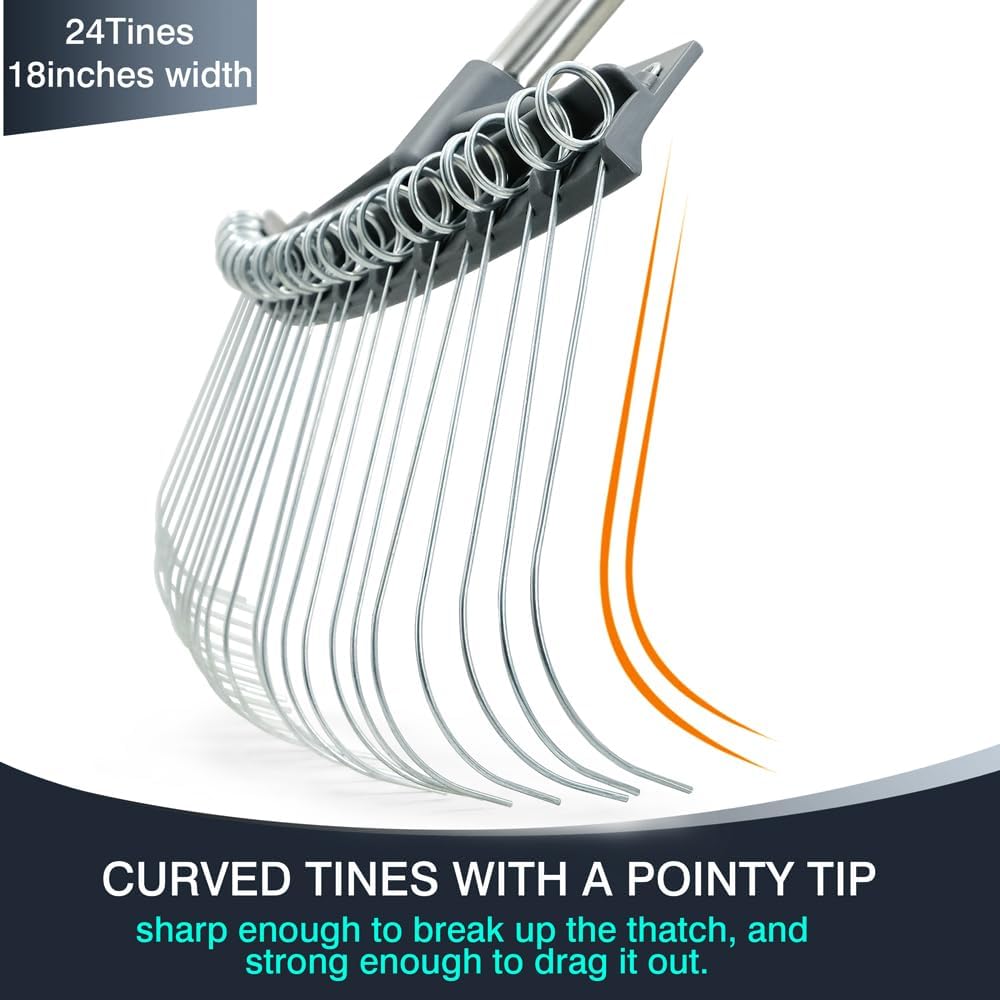 Colwelt Thatch Rake -24 Steel Tines, Dethatching Rakes with 54’’ Lightweight Stainless Steel Handle, Yard Dethatcher Rakes for Lawn(Pine Needles, Dead Grass, Thatch, Leaves, Mulch)