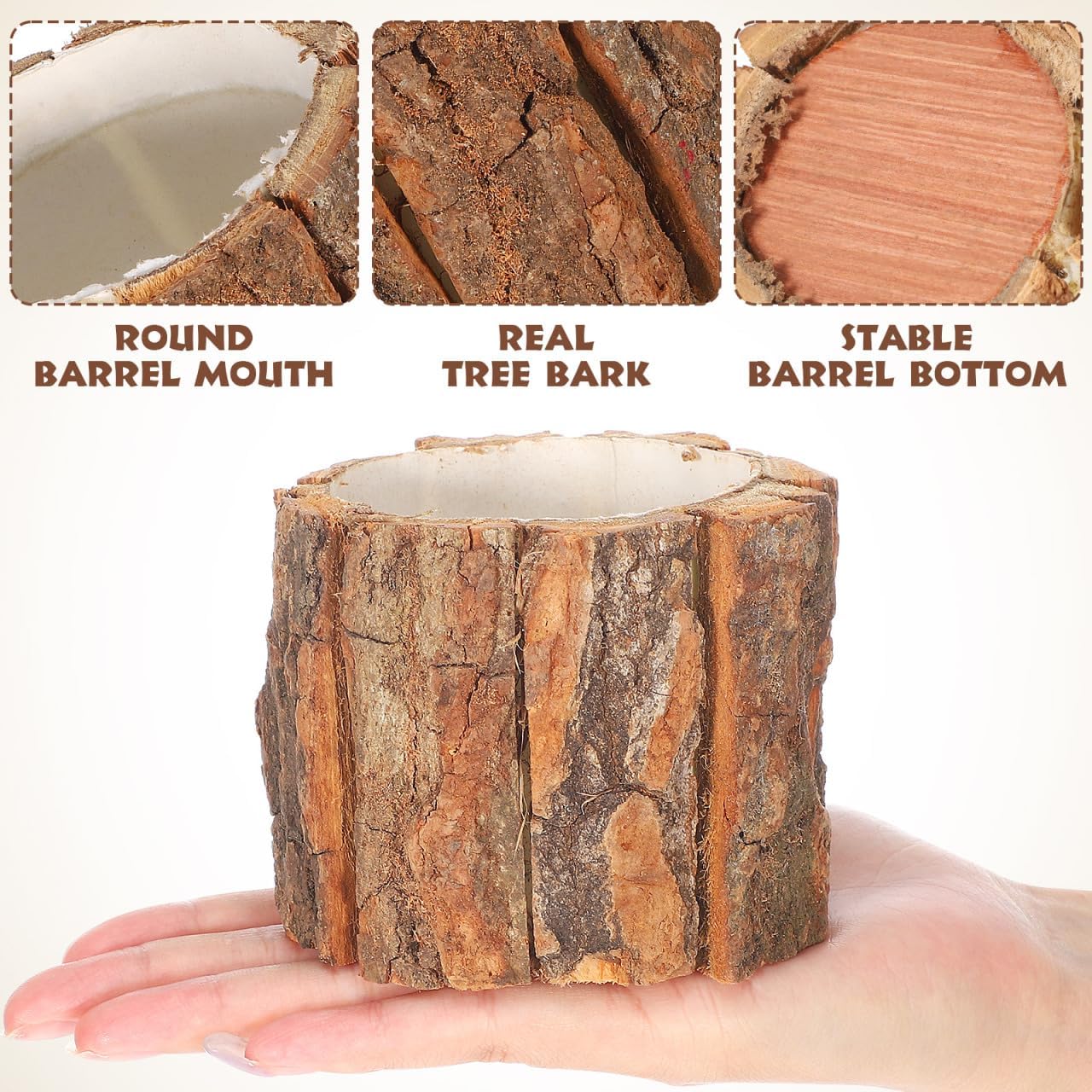 - Creative Design - The unique wood bark flower pots add a rustic charm to any space, making them perfect for farmhouse decor, weddings, and garden settings