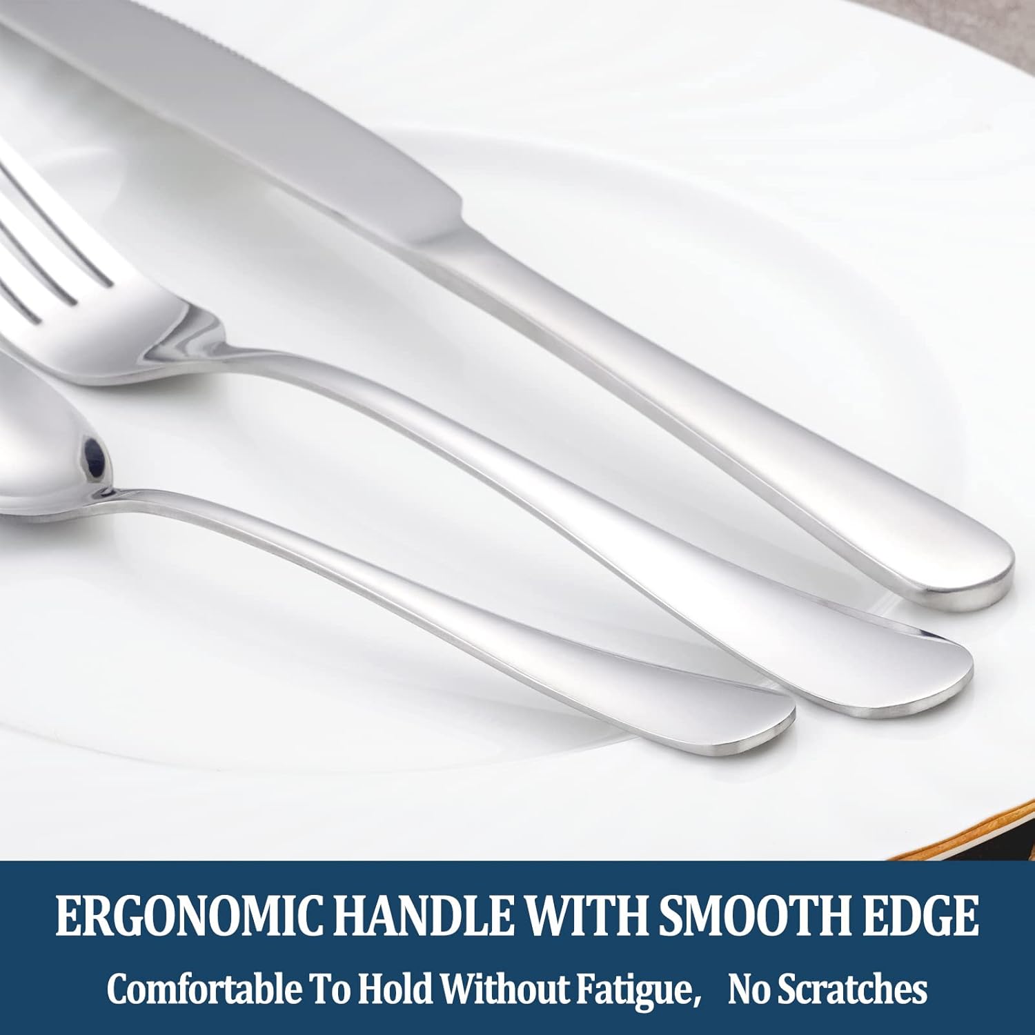 - PROPER WEIGHT AND COMFORTABLE HANDLE: Unlike other brands, the curvature of our dinner forks set handles is designed according to the posture of the hand, and the appropriate weight and perfect balance are added to ensure maximum comfort during use that avoids you feel tired. Moreover, the smooth edges ensure safety and no scratches.