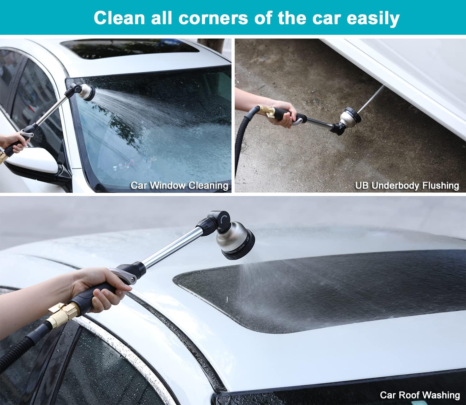 - 【100% HEAVY DUTY METAL】The adjustable garden hose sprayer wand is constructed of zinc alloy, aluminum alloy, and TPR for a tough lightweight and durable that's easy to grip and adjust. Slip resistant handle make this watering wand comfortable to use. Non-corrosive exterior that ensures strength and durability for extended nozzle life. The shock resistant rubberized bezel dial can enhance durability & flexibility and withstand hard impacts & heavy force in daily drops and shocks.