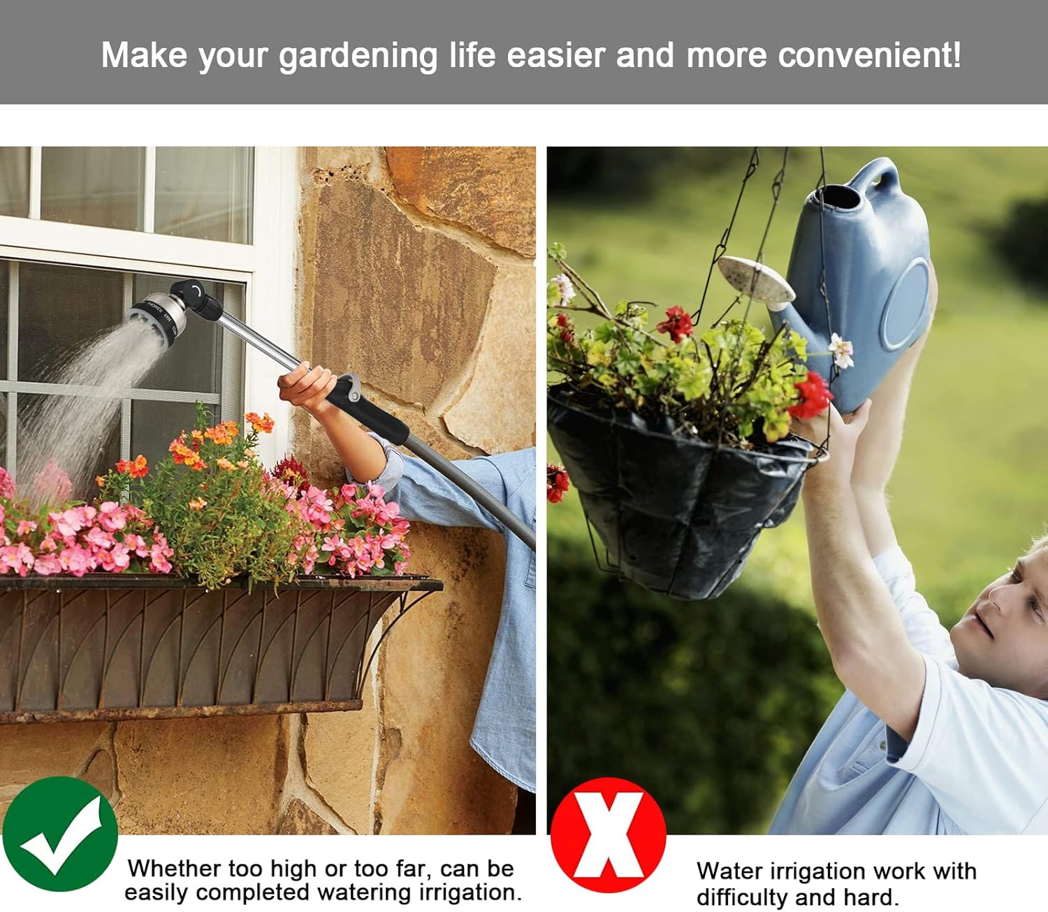 - 【16-INCH LENGTH & LEAK-PROOF】The extended reach of 16-inch Length is excellent for reaching hanging baskets and shrubs. One piece design and a rubber hose washer provides a durable and tight seal to eliminate leak. Consistent water flow in all positions and directions, our watering wand also has completely shutting off function.