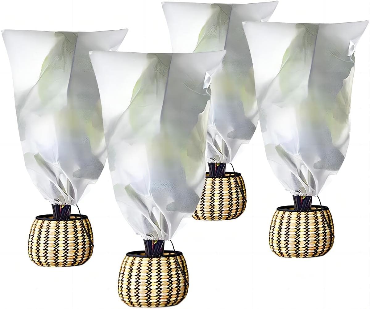 Agfabric Plant Covers Freeze Protection 72"x72"x12" 0.9oz Freeze Cloths for Plants Plant Frost Protection Covers Drawstring Bags Shrub Jacket Warm,White,4 Pack