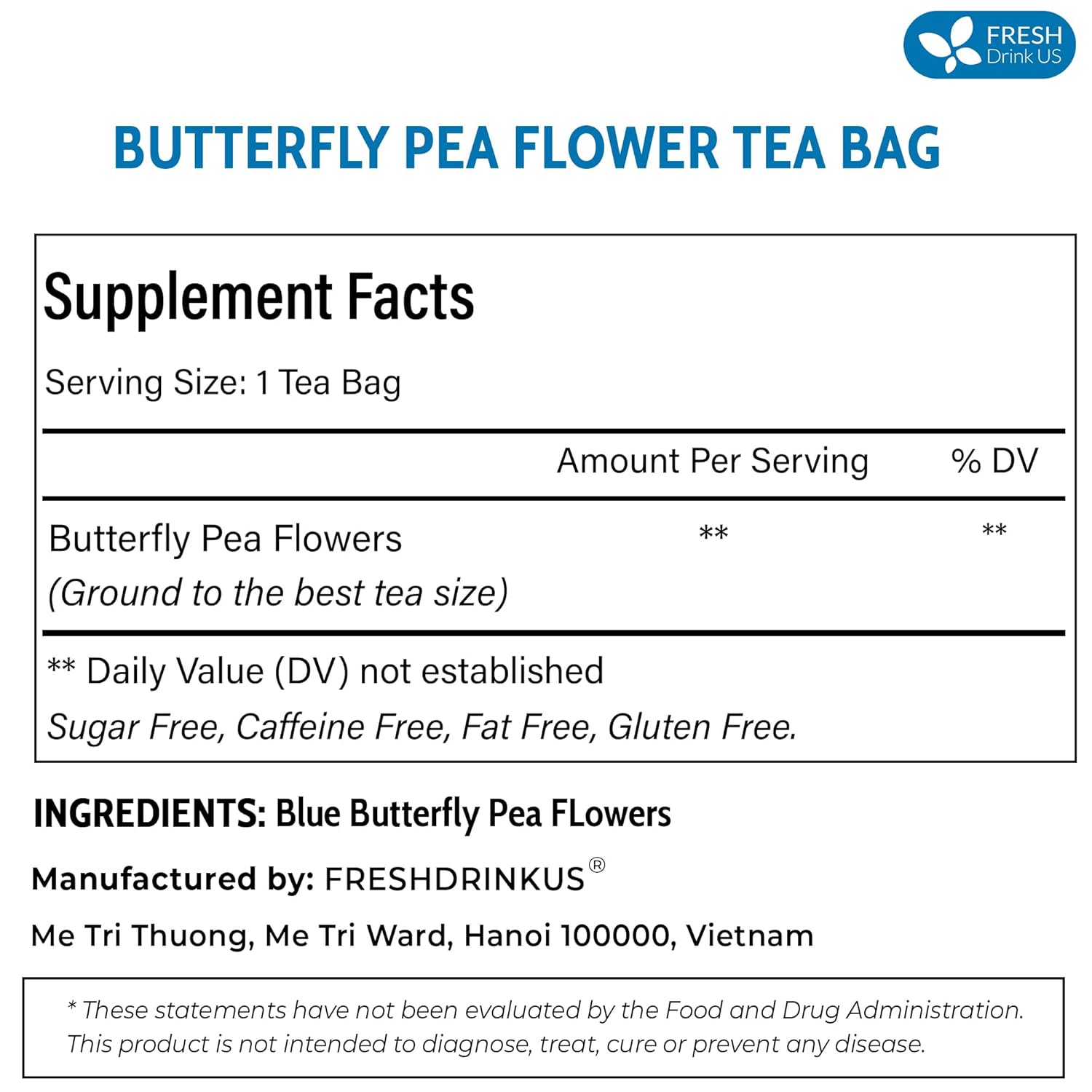 FRESHDRINKUS Premium 55 Butterfly Pea Flowers Tea Bags,100% Pure, Organic, Non GMO, Made With Organic Bags, Sugar/ Caffeine/ Gluten Free, Wildcrafted, Vegan, Handmade Product