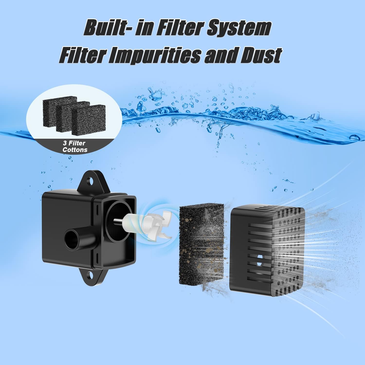 - Blocking Protection System: Solar powered fountain comes with an anti-clogging technology, it will stop working automatically when the filter cotton or rotating shaft is blocked in the direct sunlight; Tips: If the solar fountain stop working, please clean the filter cotton and rotating shaft; Please do not put the solar fountain in a place where there is no water and the sun shines directly to avoid dry working