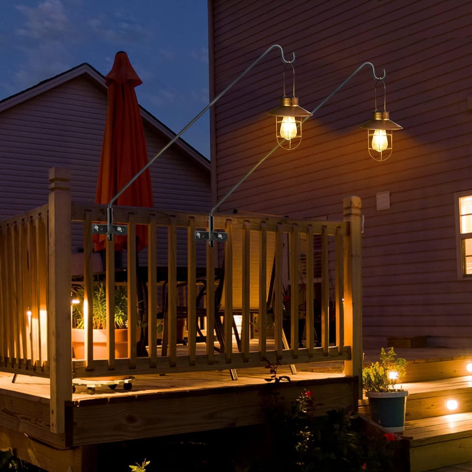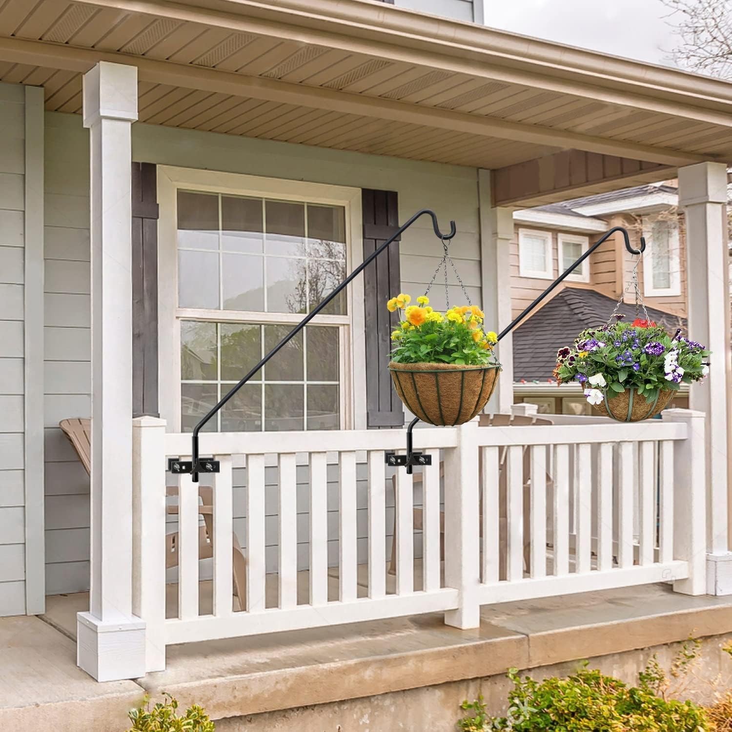 - Multipurpose Deck Hooks: With the bird feeder pole for deck you can hang bird feeders away from the fence and can reduce the number of times you have to clean up bird poop. Deck hook for outdoor is also suitable for hanging plant baskets, decorative lighting, bird feeders, wind chimes, etc. to add a different look to your house.