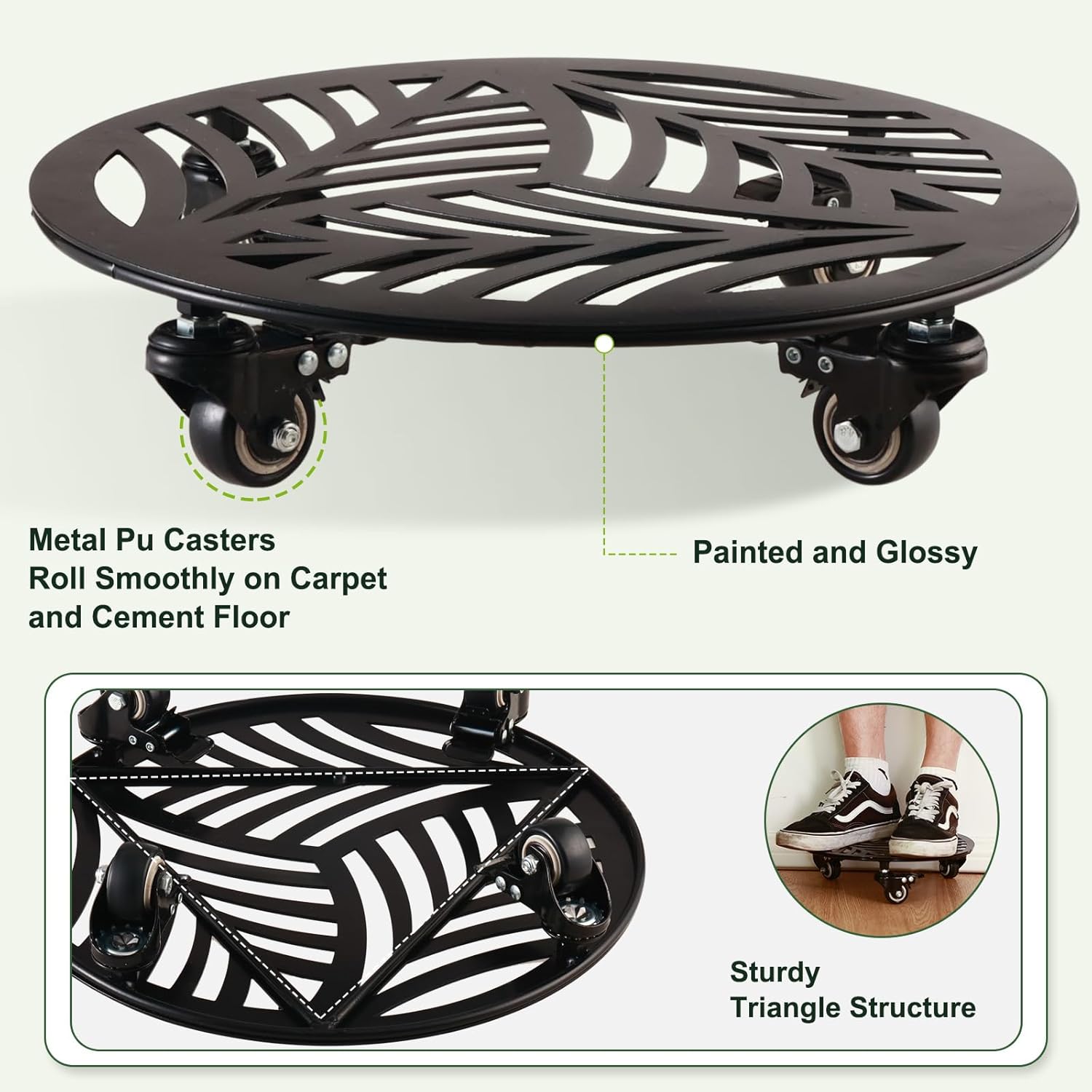 - Unique Design: The package will come to you with one set of 13.6 inches large sturdy metal plant caddy with metal PU casters, which is special designed like leaf pattern. It holds the heavy plant pots while add an addition to your home decor.