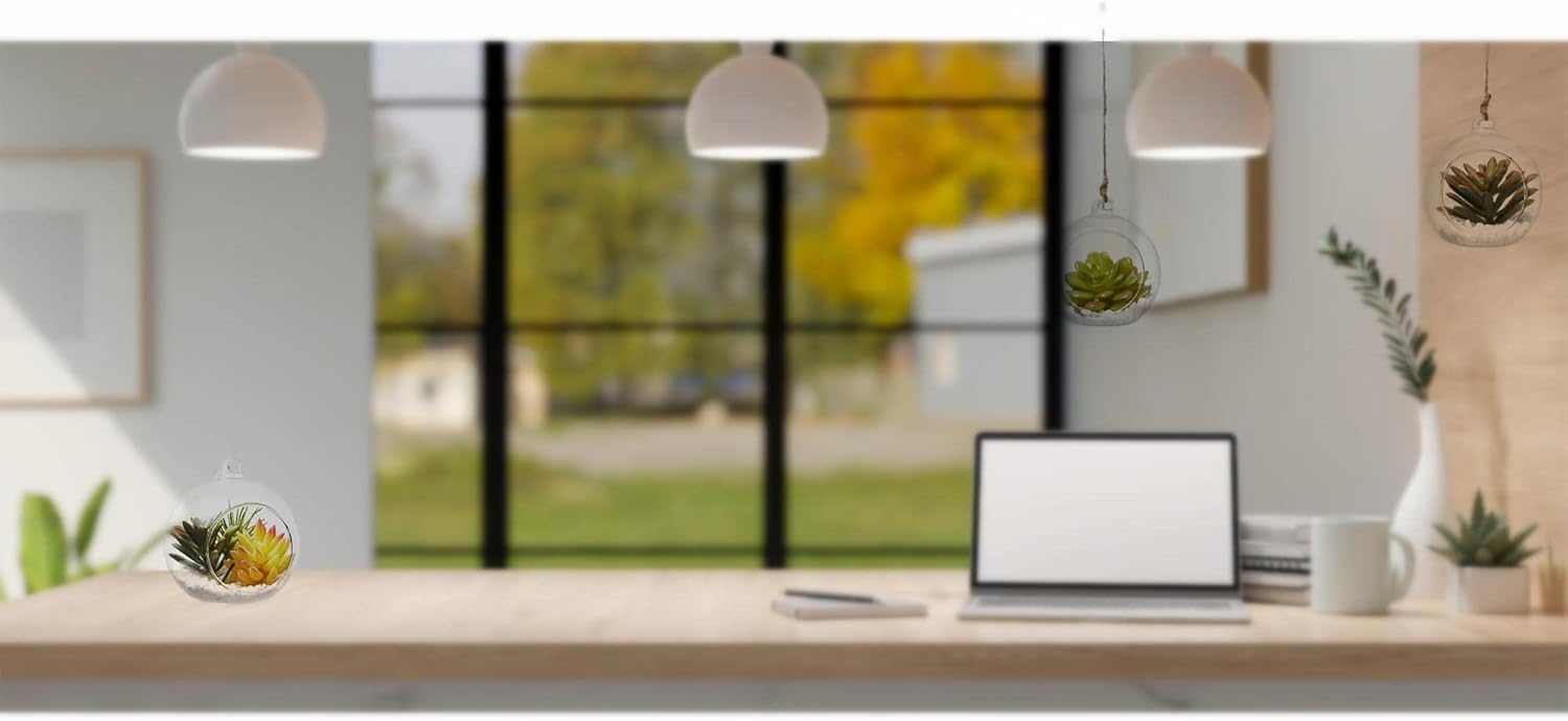 - FLAT BOTTOM: The hanging glass tea light holder is easy to hang up through the little hoop on the top. The glass globe also has a flat bottom which can lay flat on the table.