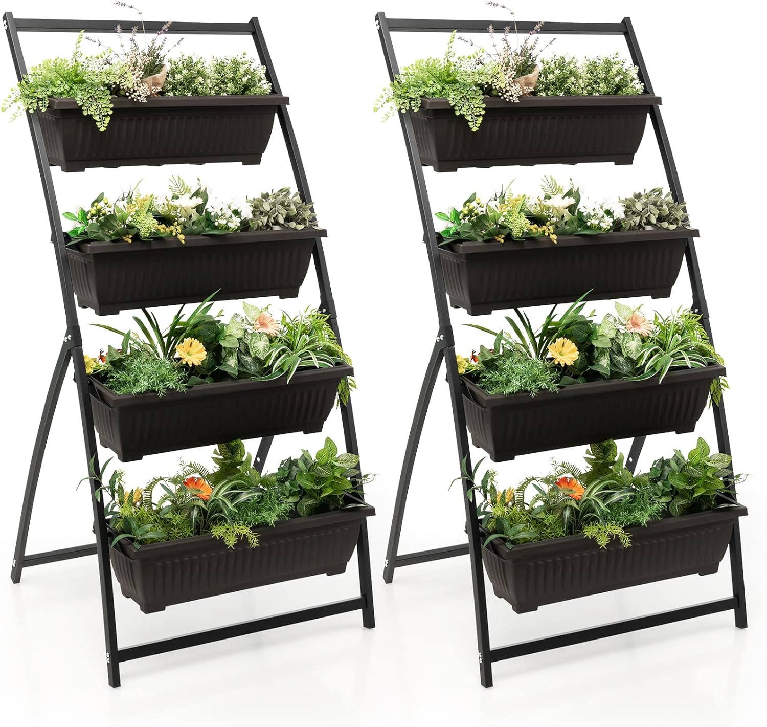 Giantex 2 Pcs 5.2FT Vertical Raised Garden Bed, 4-Tier Elevated Planter Box w/4 Containers & Drainage Holes, Indoor Outdoor Freestanding Planter for Vegetables, Herbs, Flowers, Heavy-Duty Metal Frame