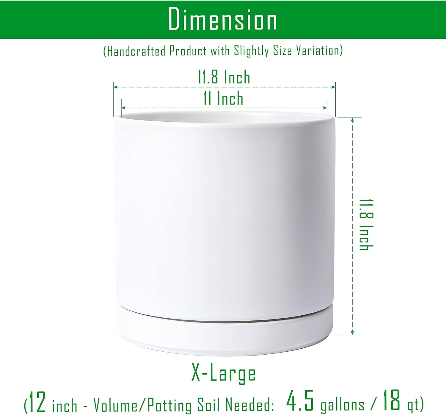 - X-Large 12 Inch Planter Pot: 11.8" Diameter x 11.8" H, white color. Potting Soil Needed: 4.5 gallons / 17 qt.